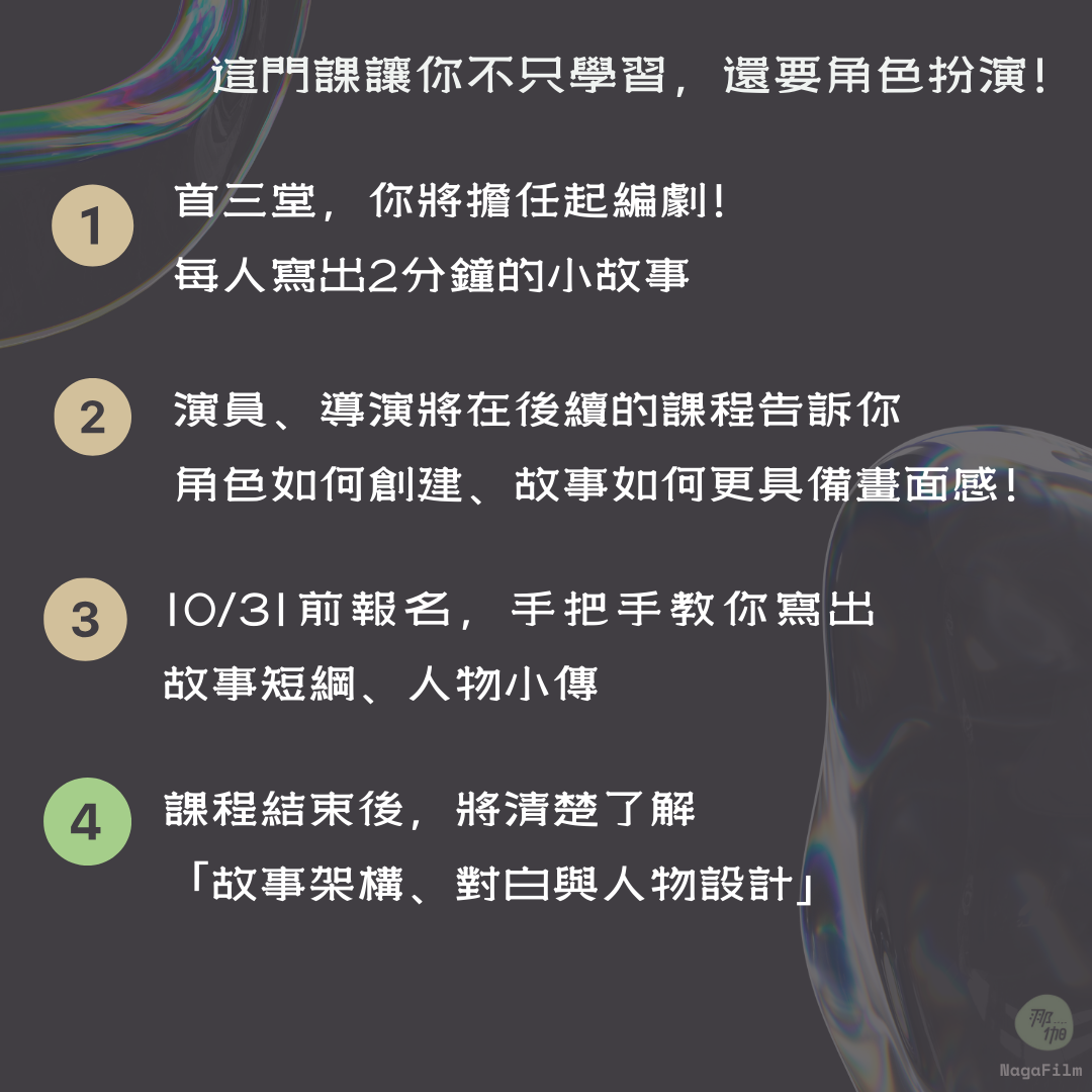 因為不只上課,我們還要你角色扮演,一上課就來體驗當編劇!詳情請往下閱讀。