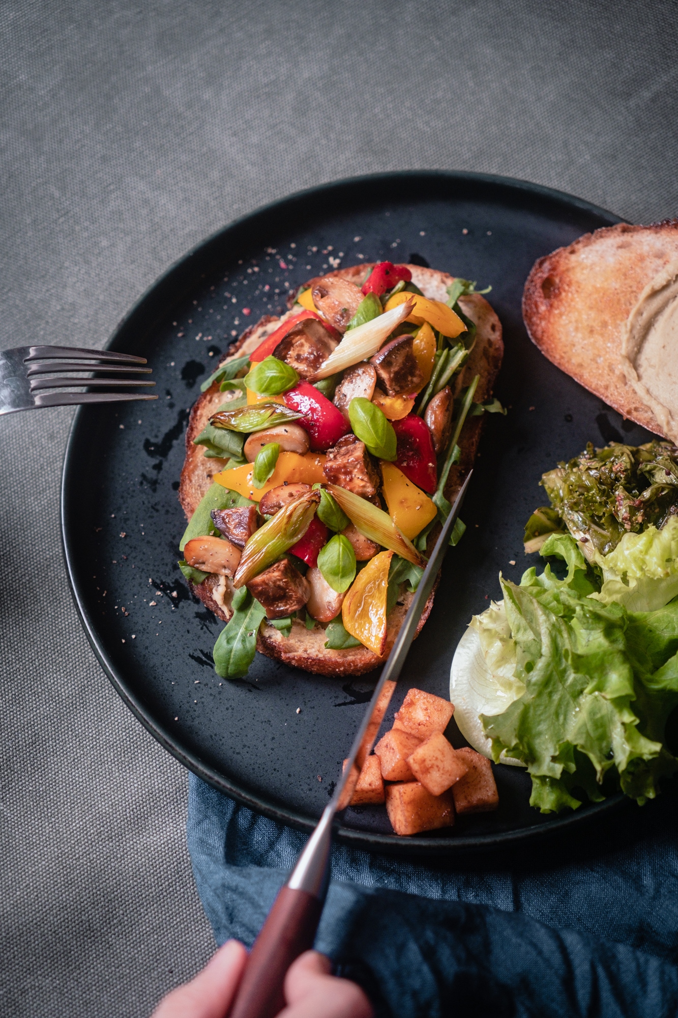 (橄欖蒜香扁豆泥/芝麻葉/蒜苗/蘑菇/水果椒/醃茄子/甜羅勒/核桃)