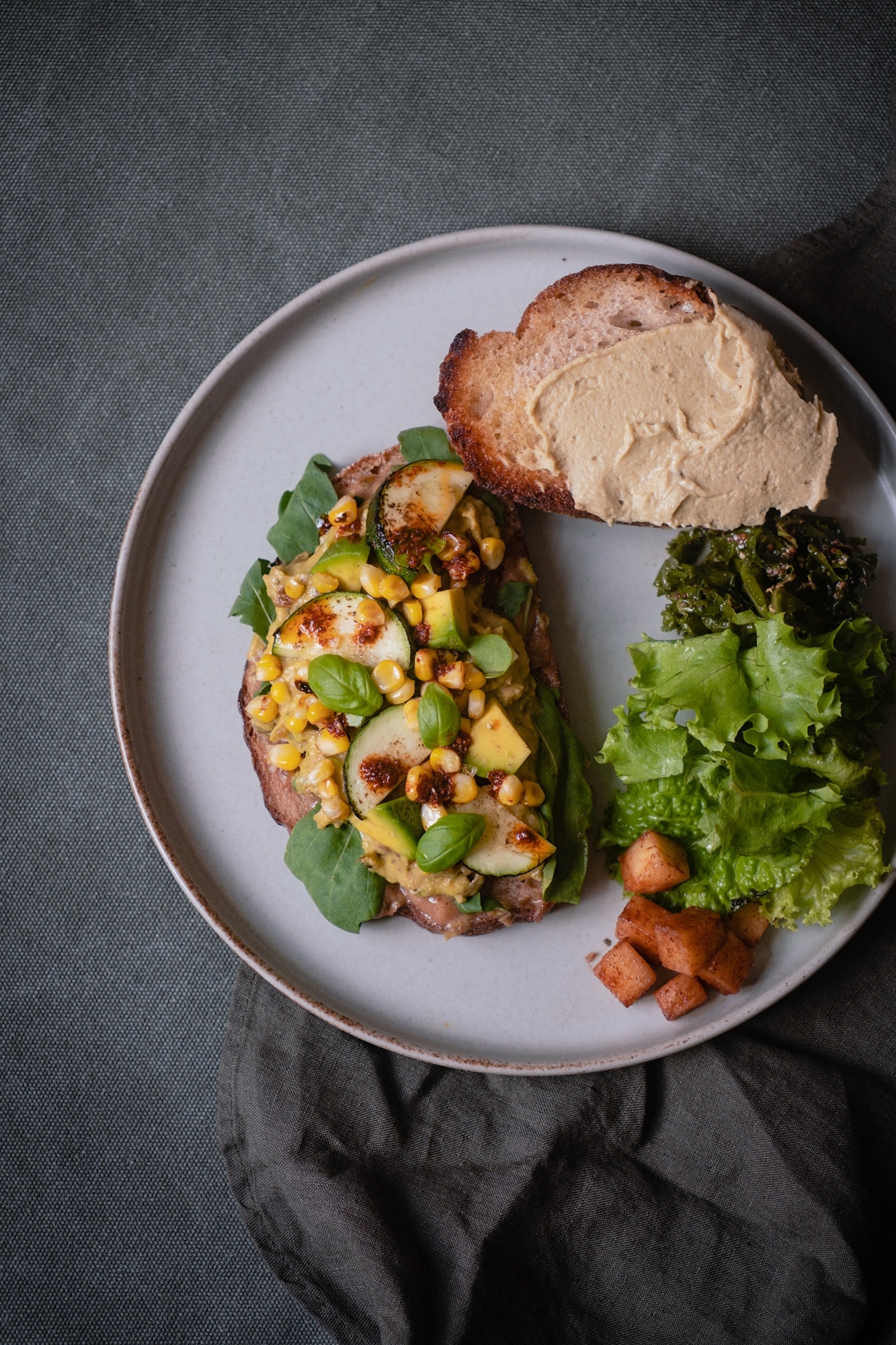 (肉桂香蕉泥/花生酪梨鷹嘴豆泥/芝麻葉/玉米/櫛瓜/酪梨/甜羅勒/核桃/辣醬)
