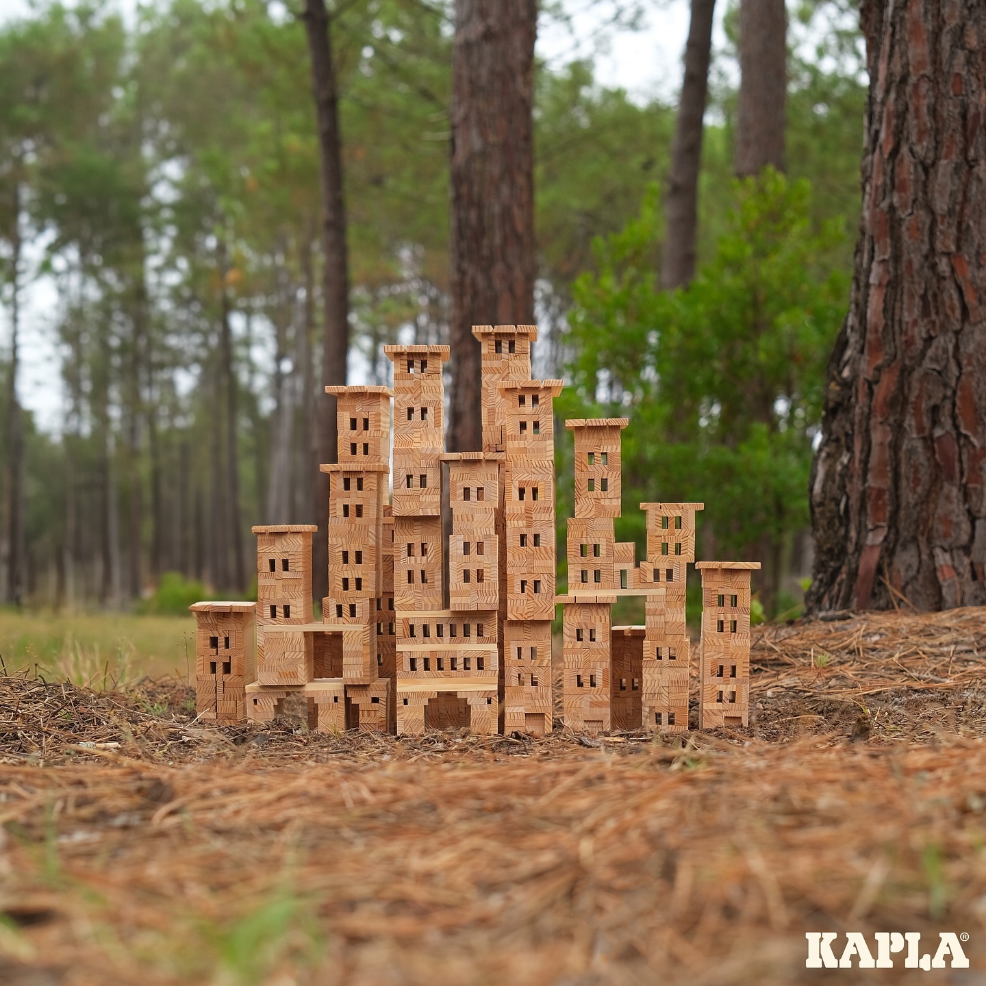 KAPLA®是由荷蘭人Tom van der Bruggen所發明,乃由荷蘭文“KAbouter PLAnkjes” 縮寫而來,意思是「小精靈的木片」。它源自於Tom「小時候的夢想」:希望長大時能住在城堡裏。 25歲時,他賣掉了在荷蘭的古董店,在法國南部買了入一座廢棄的農莊,並花了16年時間建造自己的城堡,而就在過程中不經意創造了這個有著1:3:5比例的積木,KAPLA®就此誕生。