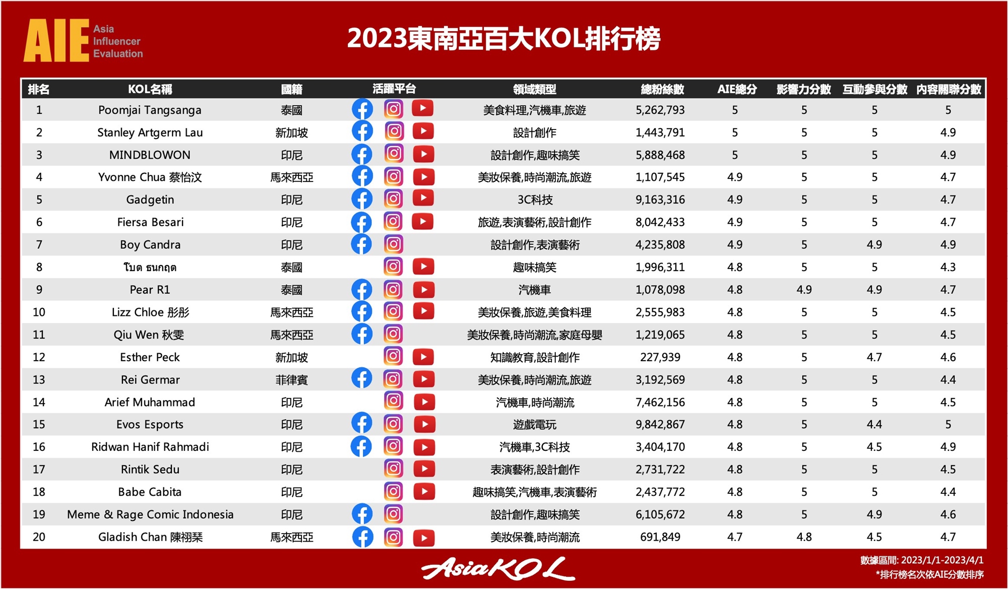 2023東南亞百大KOL洞察報告|AsiaKOL跨境網紅行銷