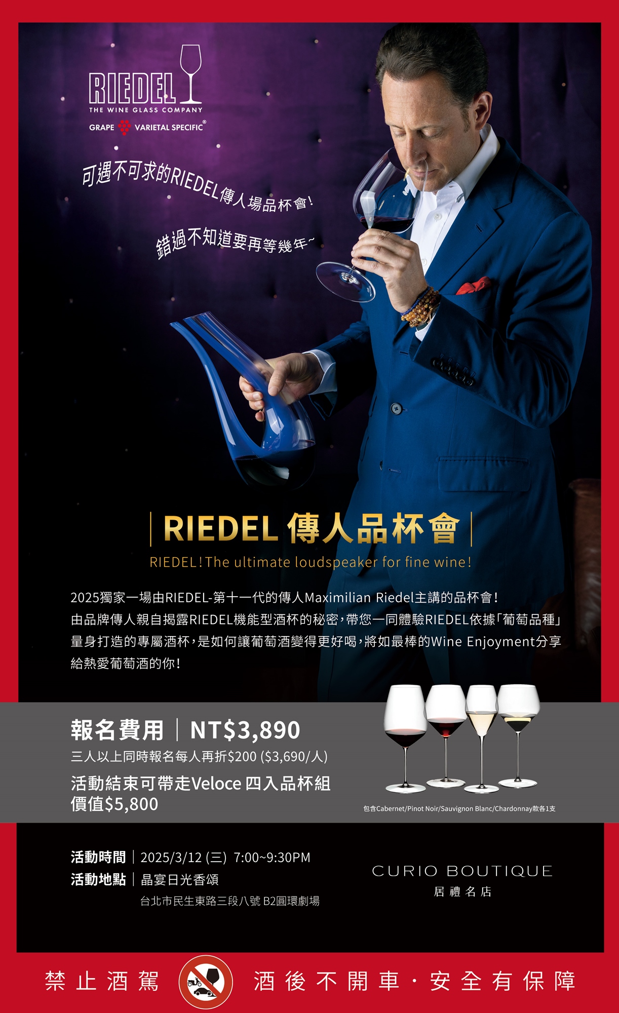 由 RIEDEL 總裁 第11代傳人 Maximilian Riedel主講的品杯會!