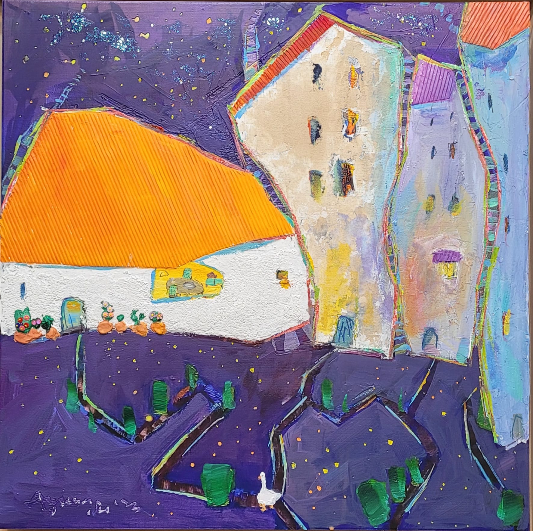 Hyunju Lim is a South Korean artist based in Busan. She has been painting her whole life and took a break to care for her family and household. In the past few years she has returned to the easel to share her whimsical and joyful worlds of wandering streets and the heart searching for small joy.