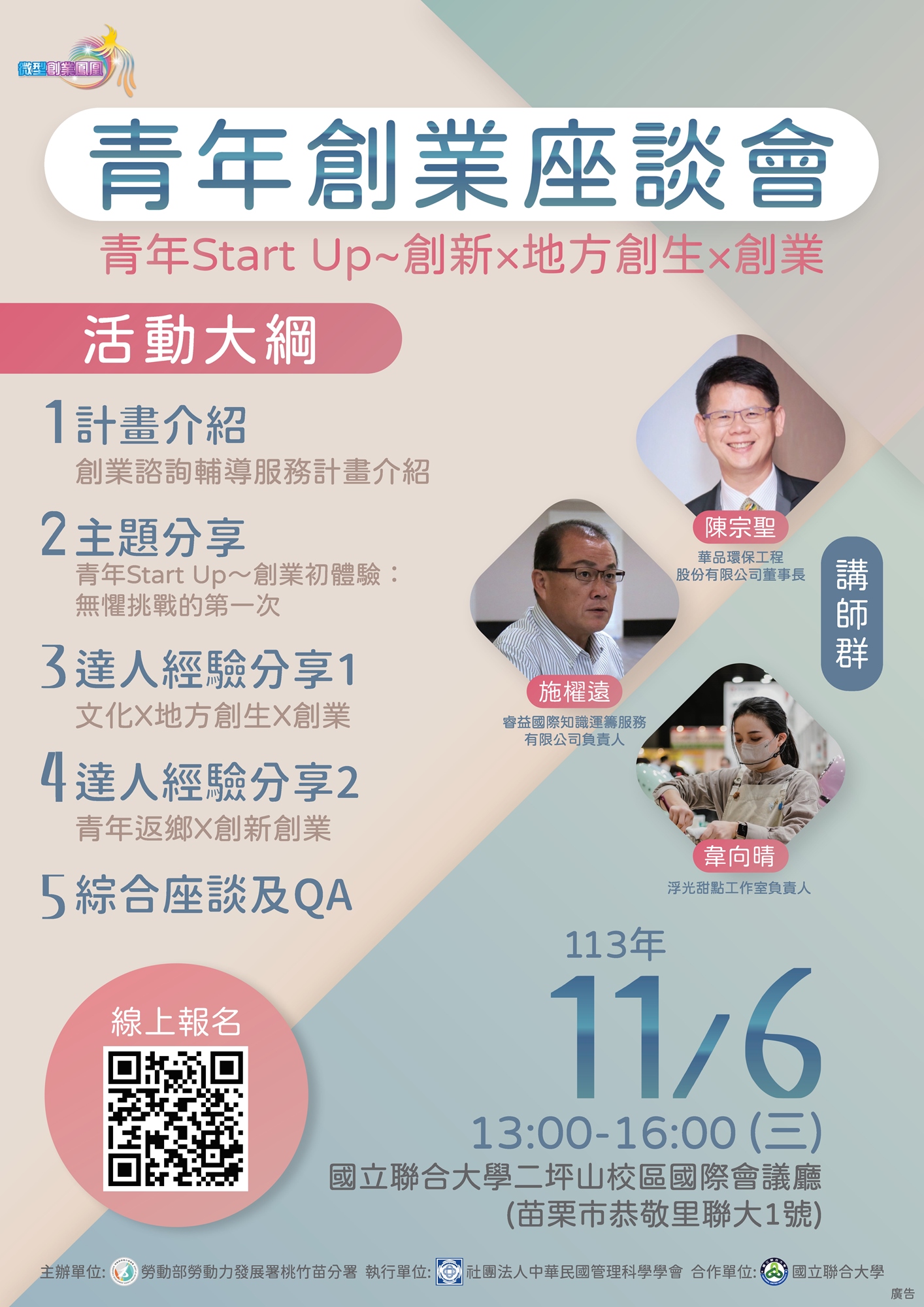 【青年創業座談會】青年Start Up~創新x地方創生x創業