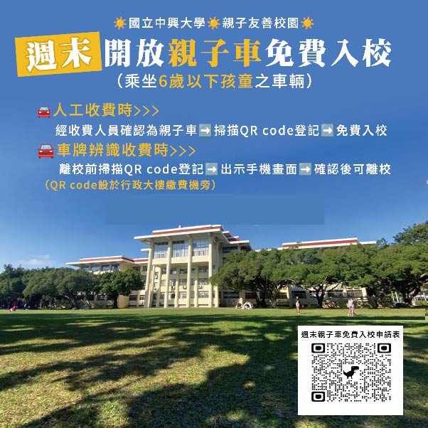 ●免費停車資訊:中興大學周末開放親子車輛免費入校
