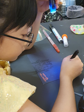 使用紫光筆在繪製神秘的隱藏圖案,讓孩子們發揮無限創意,創作出屬於自己的萬聖節秘密!