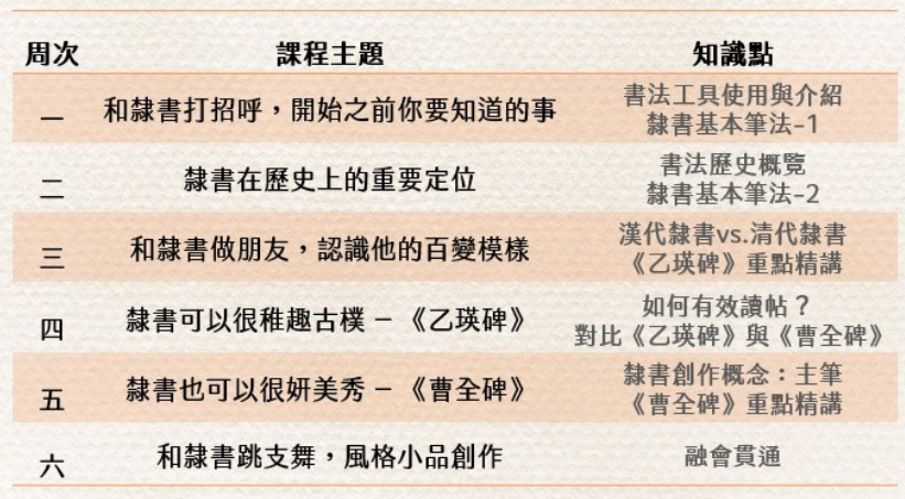 「開心隸書線上直播課」為期6周,