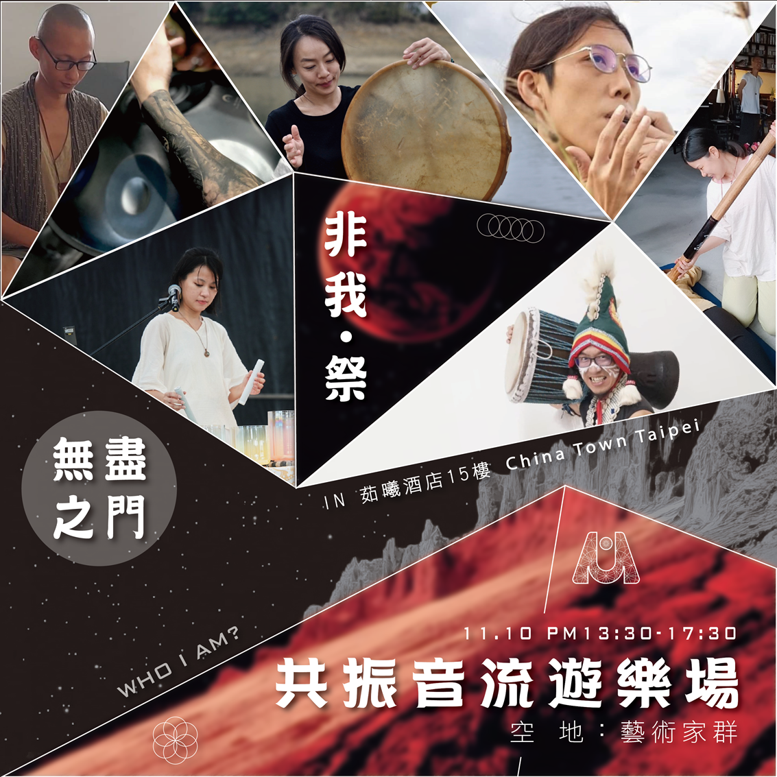 邀請到空地藝術家群們,「空」是空地的藝術家們兩年來在音流中覺察寶藏,在非我祭的市集能量中,從空無一物的地方創造音流、舞動、特技光影的即興演出。