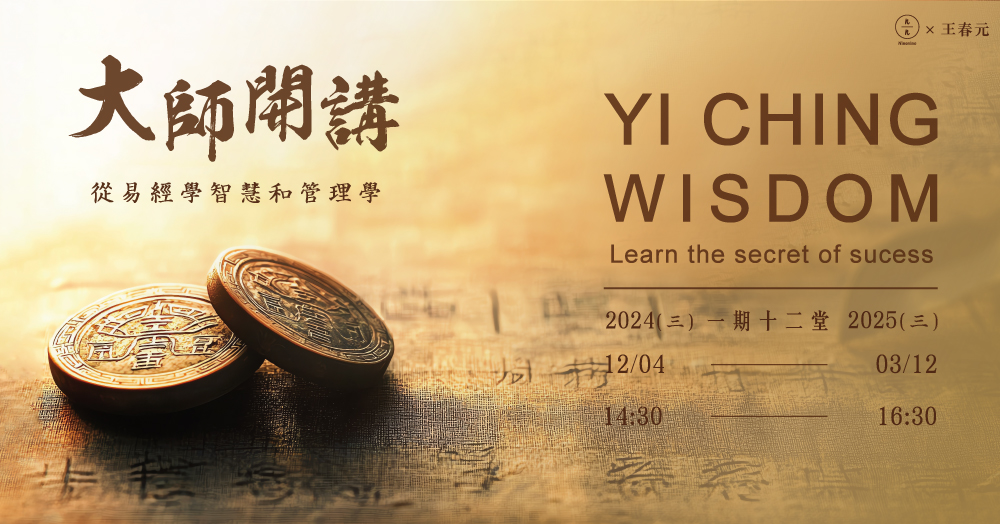 易經是古代皇帝的治國之書,也是現在企業主最需要的企業管理之道。透過細緻的了解萬物的運行狀態,老師將引領同學深入簡出的探究易經文字奧妙,深入中國精神的文化底蘊,引導同學體會古人留下的禮讚,陪伴你渡過人生中業力浮沉的轉念,幫助你在人生的道路上逢凶化吉。