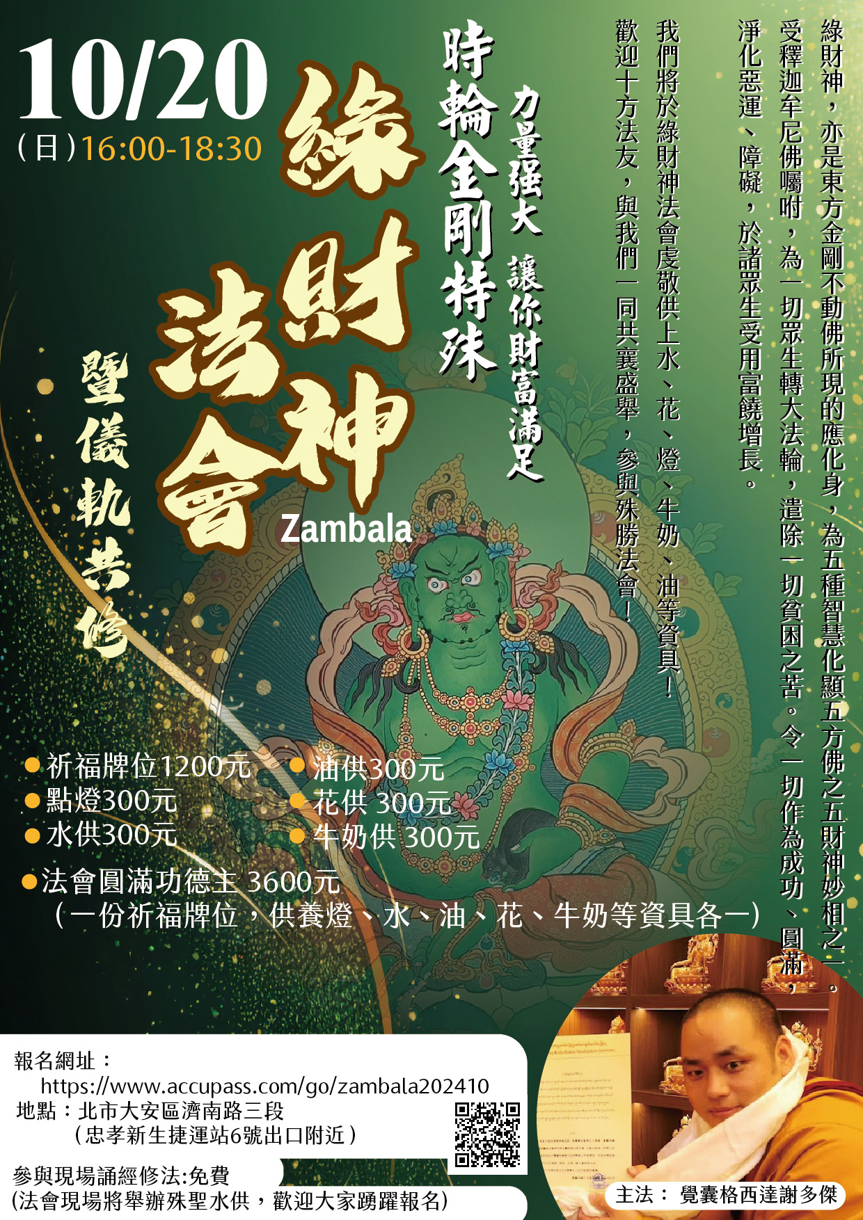 《 時輪金剛 特殊綠財神法會》