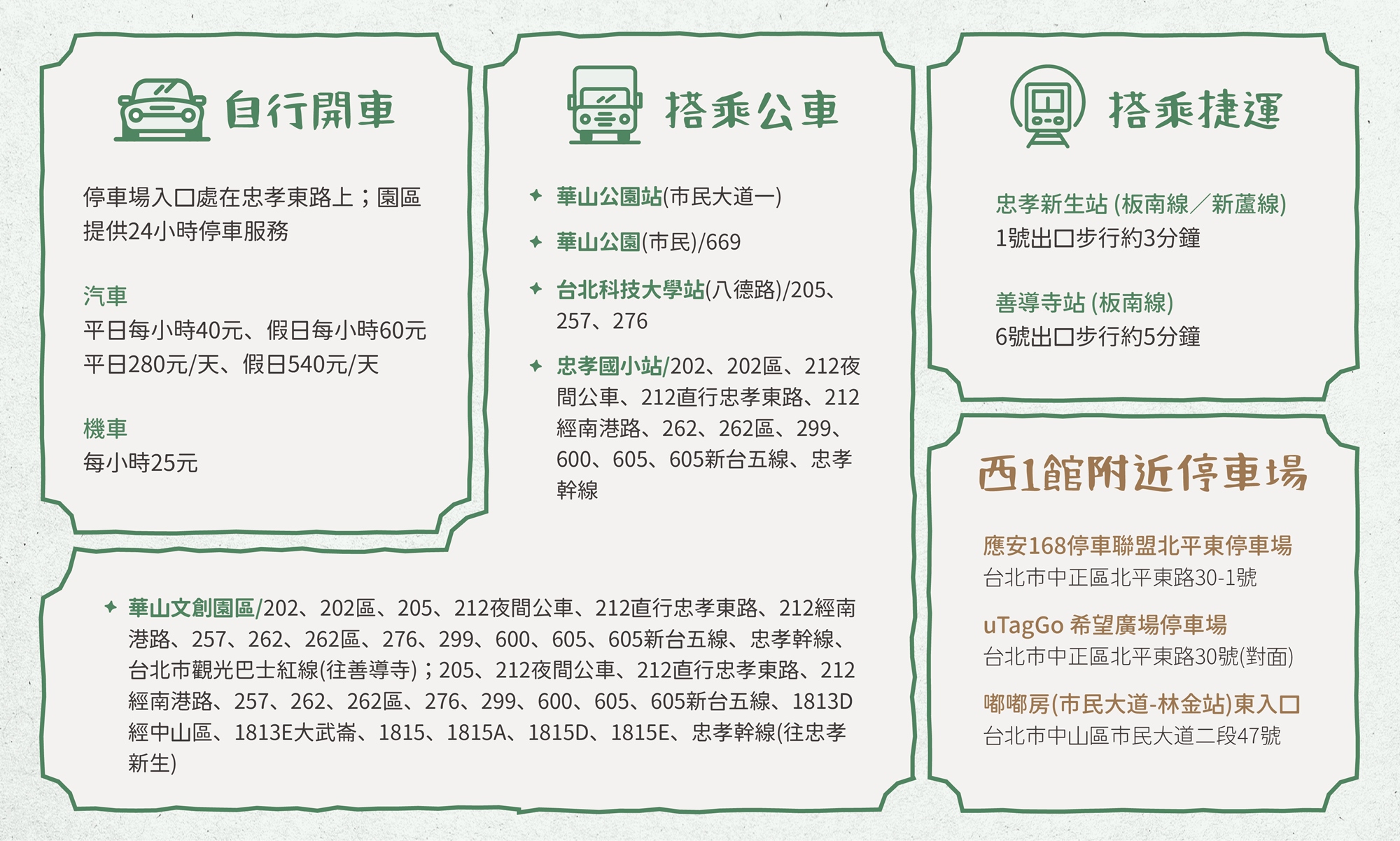 華山文創園區 紅磚六合院西1館、西2館(台北市中正區八德路一段1號)