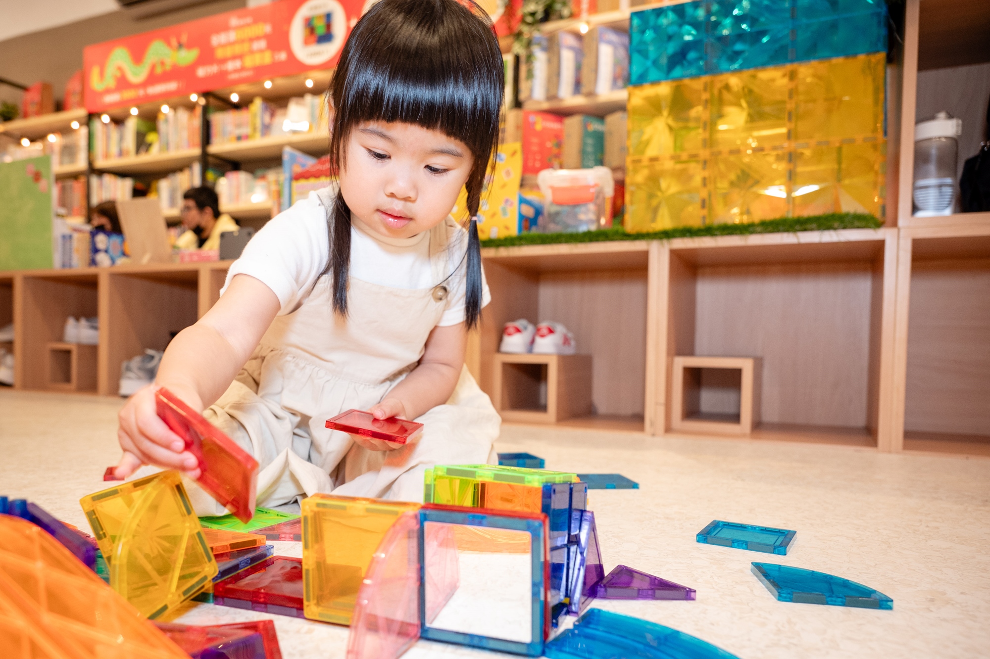 在繪本之森小教室裡,不止準備了破萬片磁力片等著小朋友前來探索,更是盡可能蒐集各種特殊造型片,以及樂高和小玩偶,激發孩子的創意和想像力,盡情探索與運用!