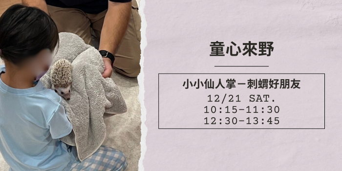 12/21(六)10:15-11:30、12/21(六)12:30-13:45 小小仙人掌-刺蝟好朋友