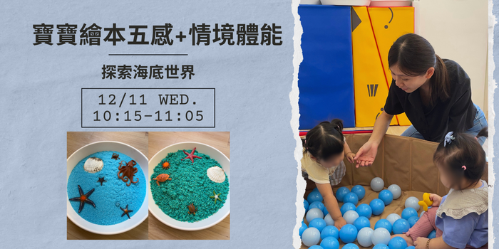 【課程日期】12/11(三) 10:15-11:05 寶寶繪本五感+情境體能-海底世界