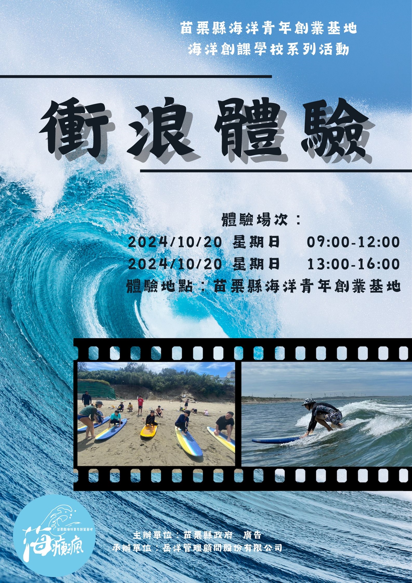 活動名稱: 海洋創客學校系列活動-10/20 衝浪體驗課程 下午場