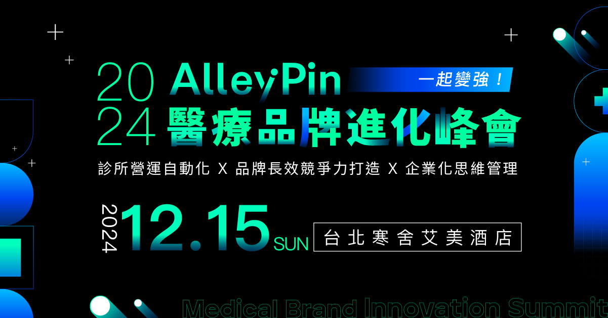 AlleyPin 首次舉辦醫療品牌進化高峰會,邀集各領域的業內專家與醫師,不藏私分享獨家心法與實務經驗,一同探討醫療診所如何擁抱數位科技實現自動化管理,提升診所營運效率,並為醫療品牌的建立助攻,打造有競爭力的品牌定位,藉由提供優異的患者體驗,加乘擴大市場影響力與品牌價值,並進一步導入企業化思維,翻轉限制、突破既有經營框架,在新常態時代,成功打造卓越的醫療院所品牌。