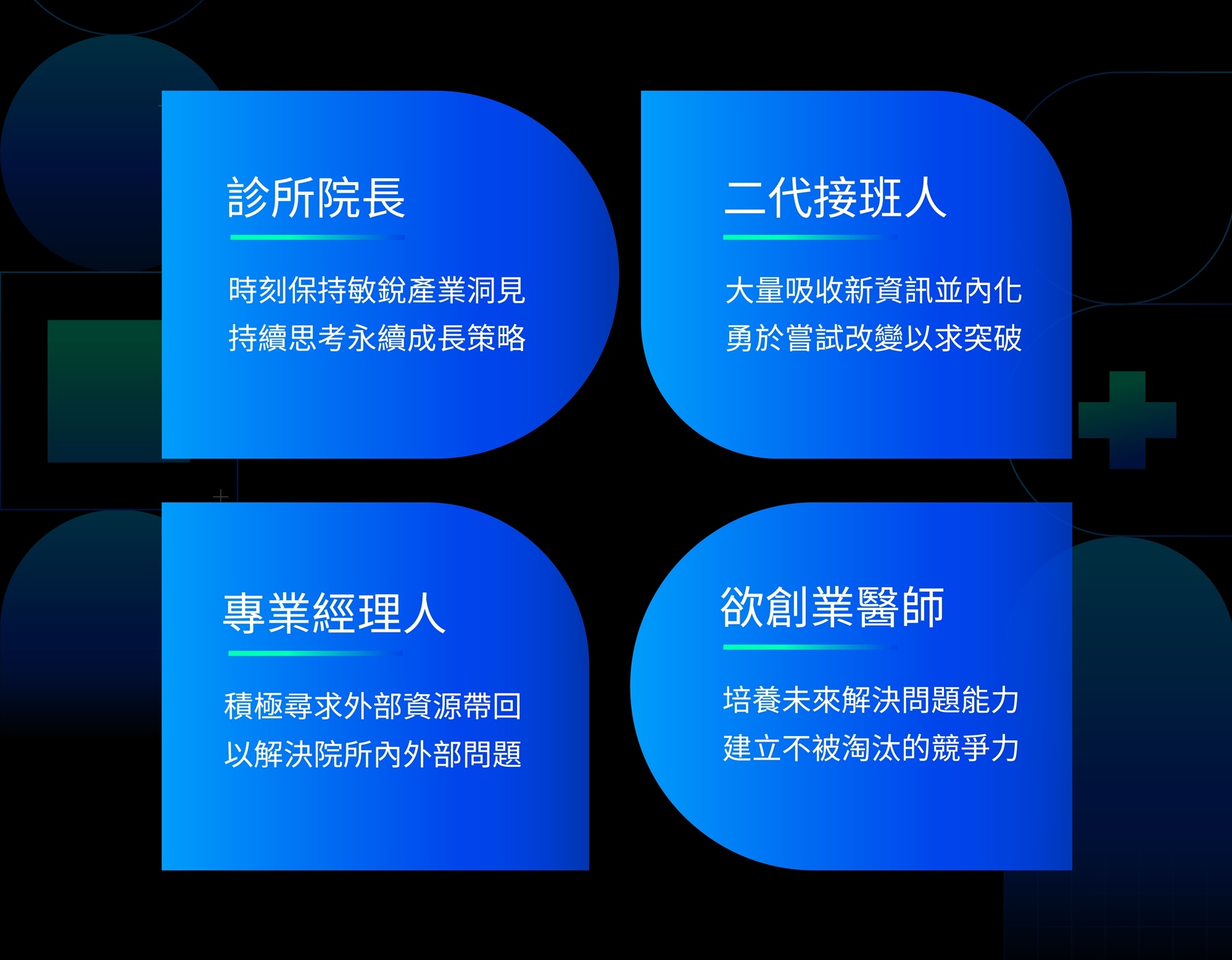 ✦ 欲創業醫師:培養未來解決問題能力,建立不被淘汰的競爭力