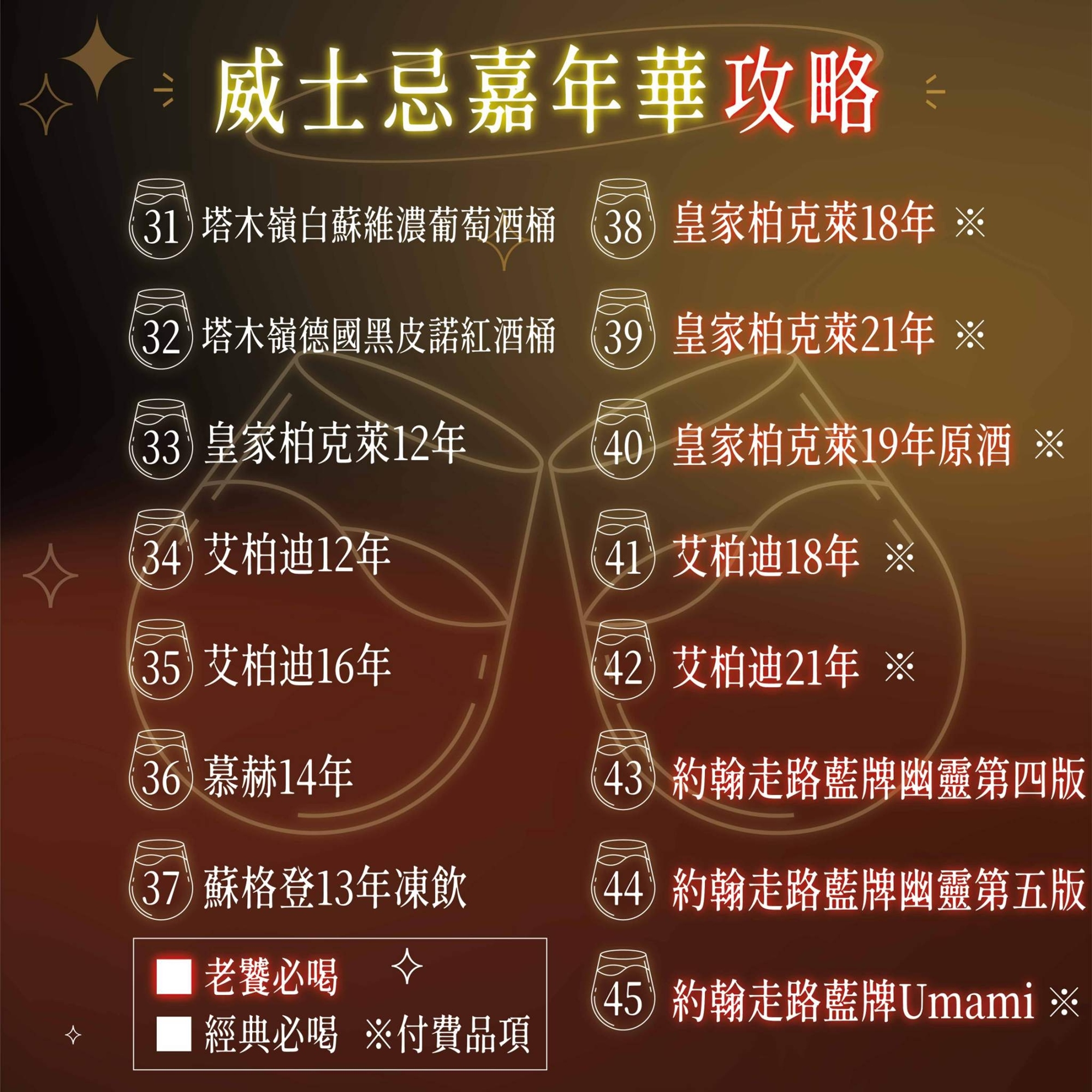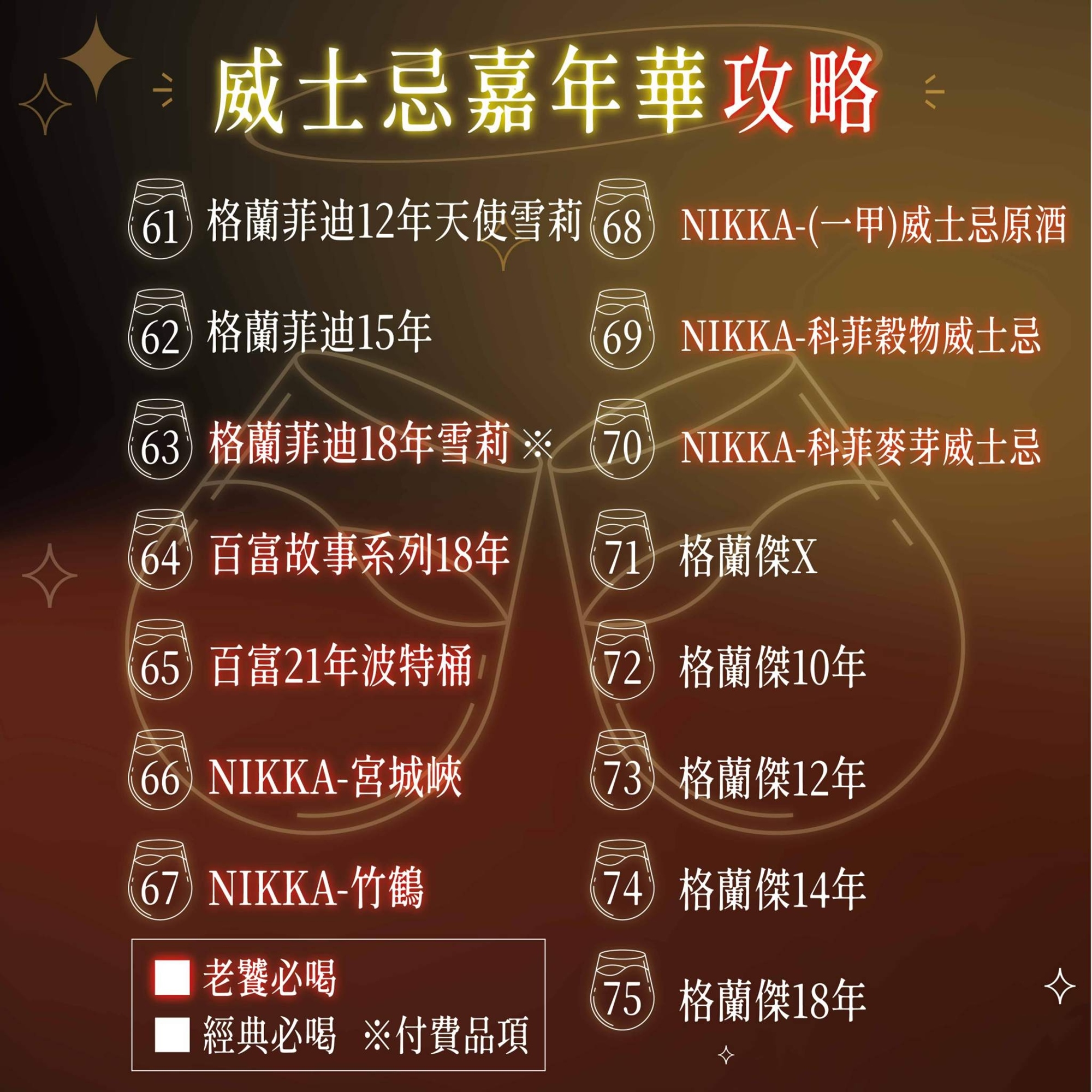 ★入場券即可折抵現場威士忌單杯費用。(單人票券可折抵$300,雙人套票可折抵$600,以此類推)