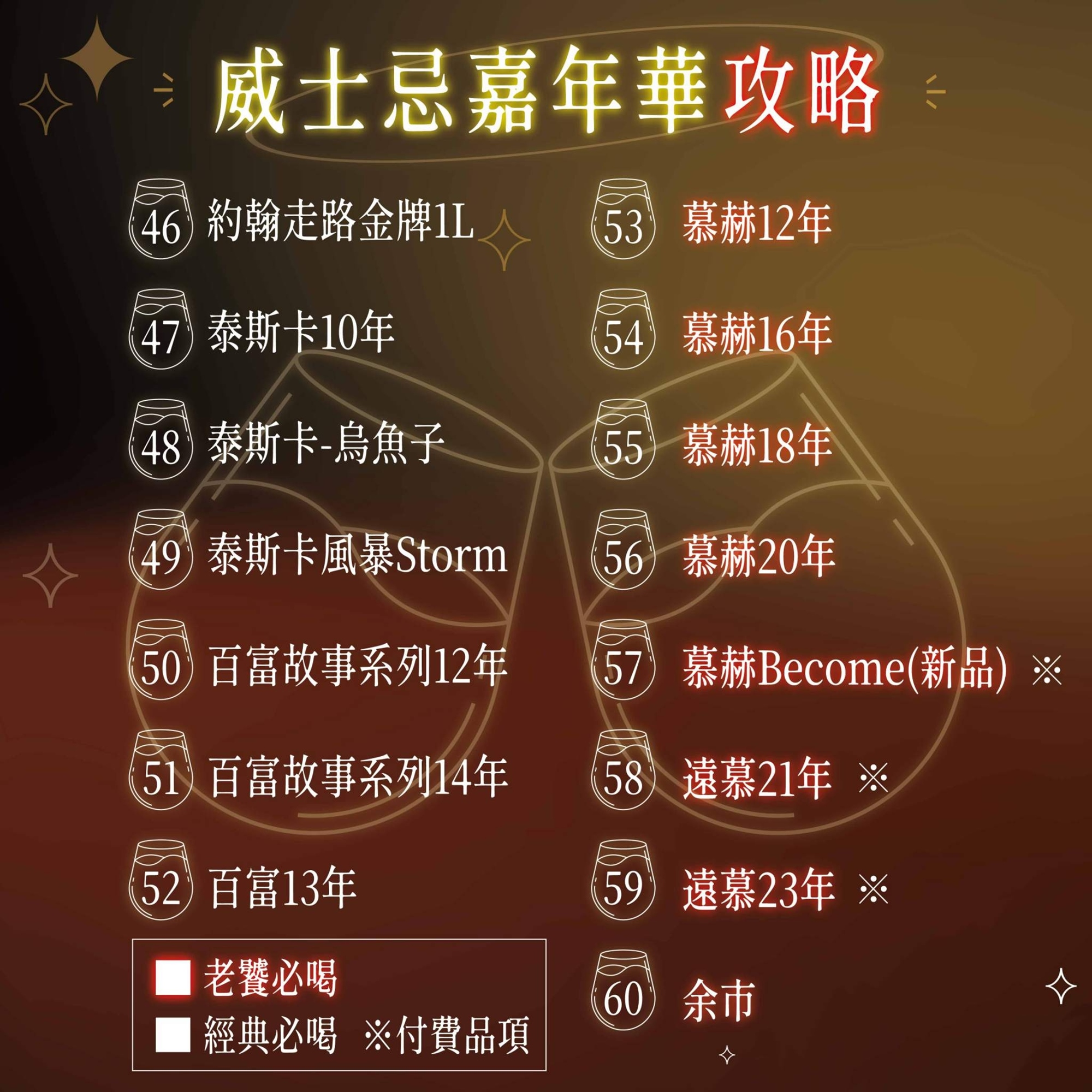 活動期間你可以品飲到超過20間以上世界頂尖威士忌品牌酒款,我們更安排多重體驗活動如知名酒款免費試飲、品飲講座以及好禮活動,無論你是為了收藏還是與朋友分享美好時光,最超值的活動~絕對讓你滿載而歸!!