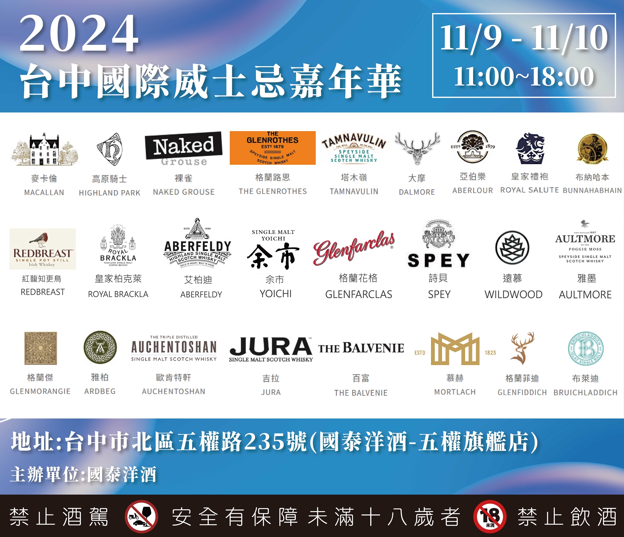 不論你是品酒老饕,還是初入威士忌世界的初學者,國泰洋酒舉辦一年一度的威士忌嘉年華將帶你進入前所未有的醉人世界。從日常普飲到稀有珍稀酒品,超過20間以上的國際一線品牌齊聚一堂,一站式的品飲體驗,威士忌愛好者的你千萬不能錯過。