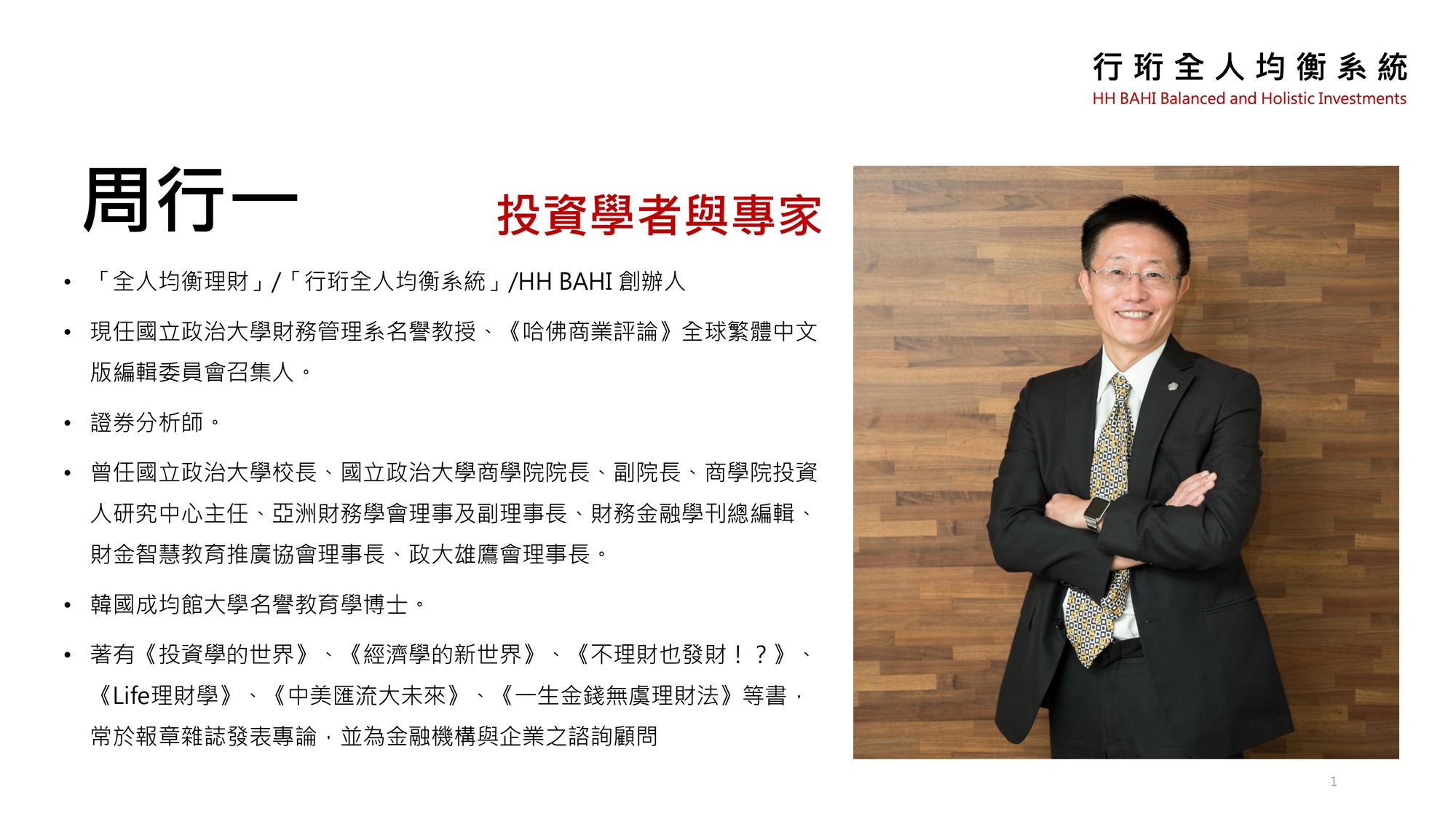 很榮幸邀請到政治大學前校長、資深金融學者周行一教授,來為大家分享他對全球經濟的看法。周教授擁有豐富的學術與實務經驗,長期關注全球經濟發展與財務管理,並研發出「行珩全人均衡系統」,該系統強調財務與人生的平衡,幫助人們實現快樂充實的人生目標。