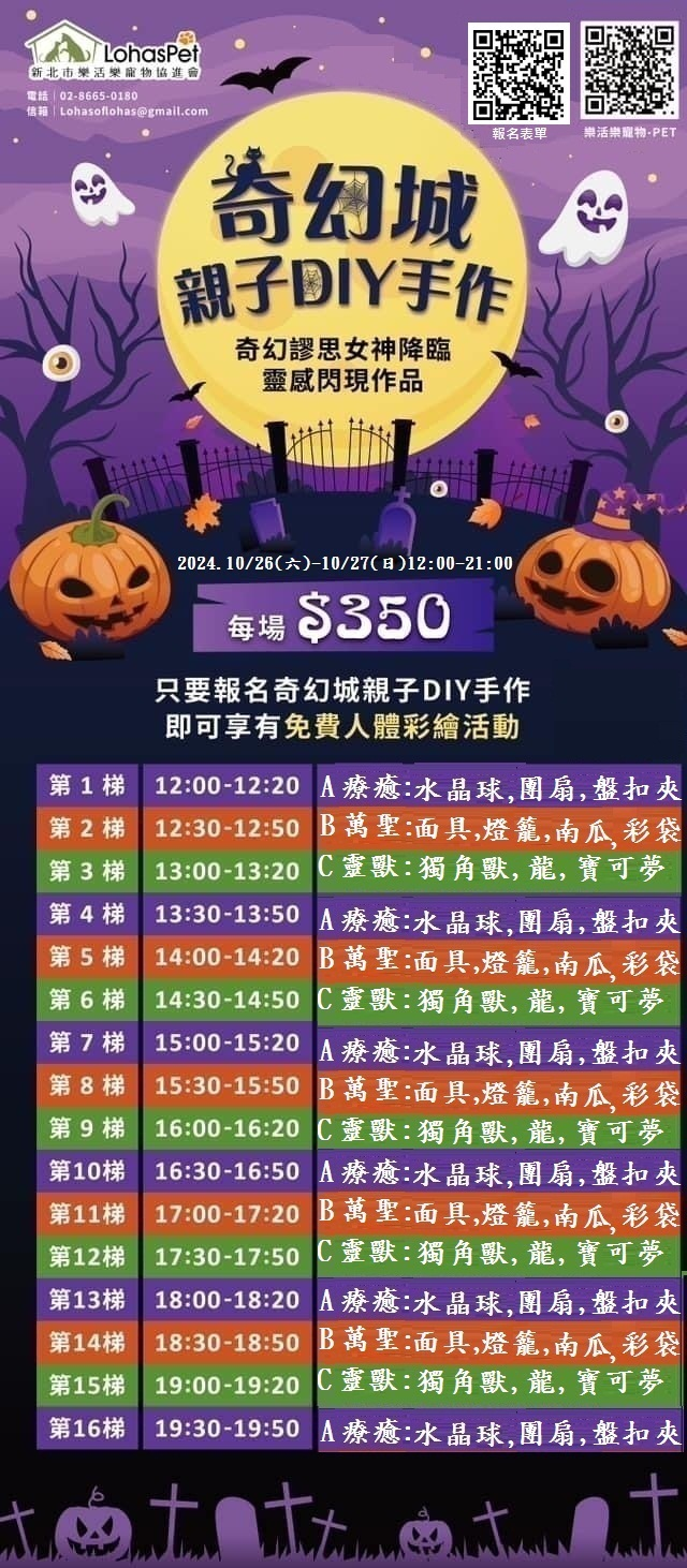 300元/任一組親子手作+任一組人體彩繪, 贈寵物手繪畫+寵物萬聖節禮盒
