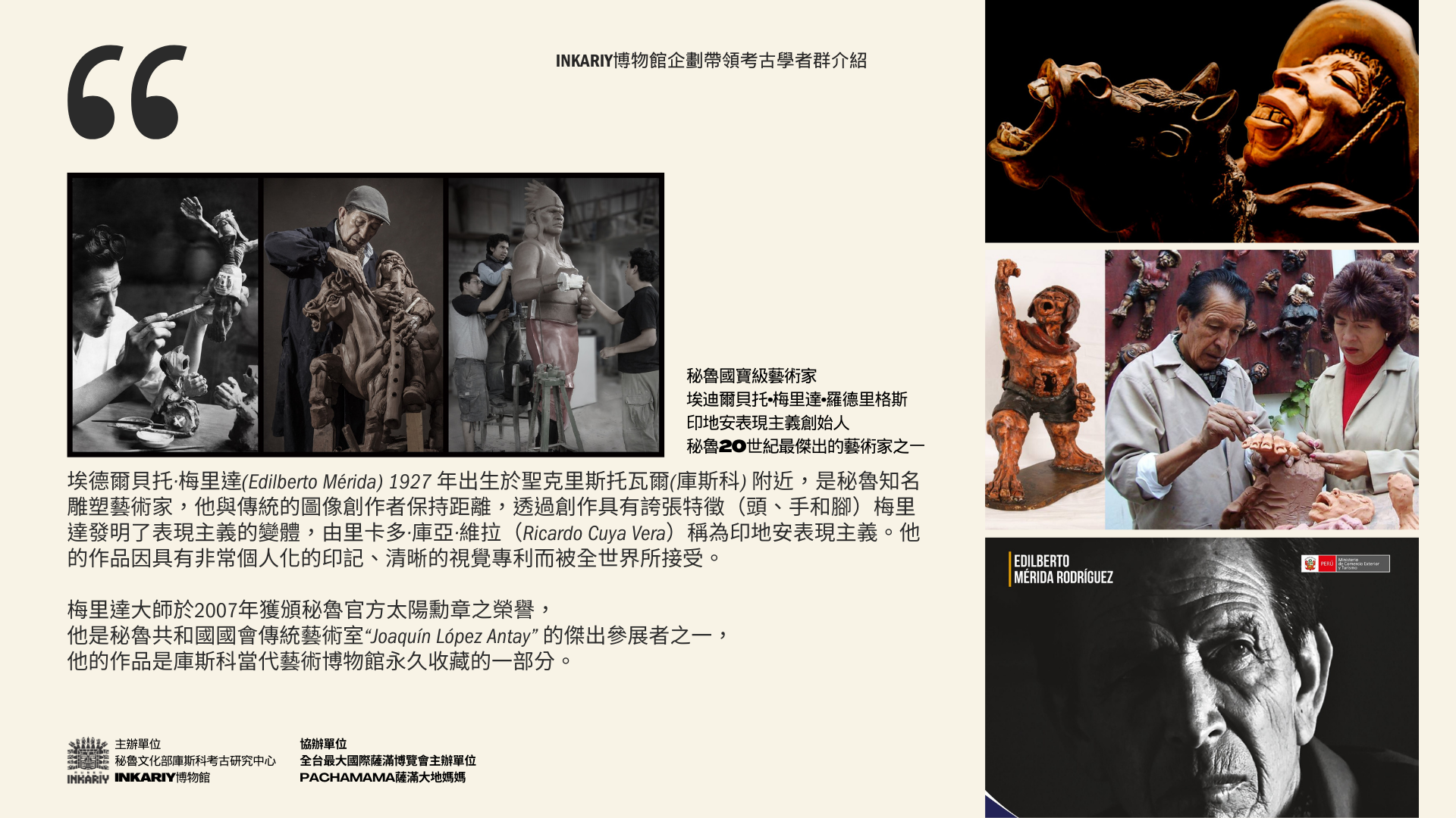 - 由獲得秘魯文化部考古研究中心秘魯國家太陽勳章的梅里達家族所經營的Museo Inkariy策劃