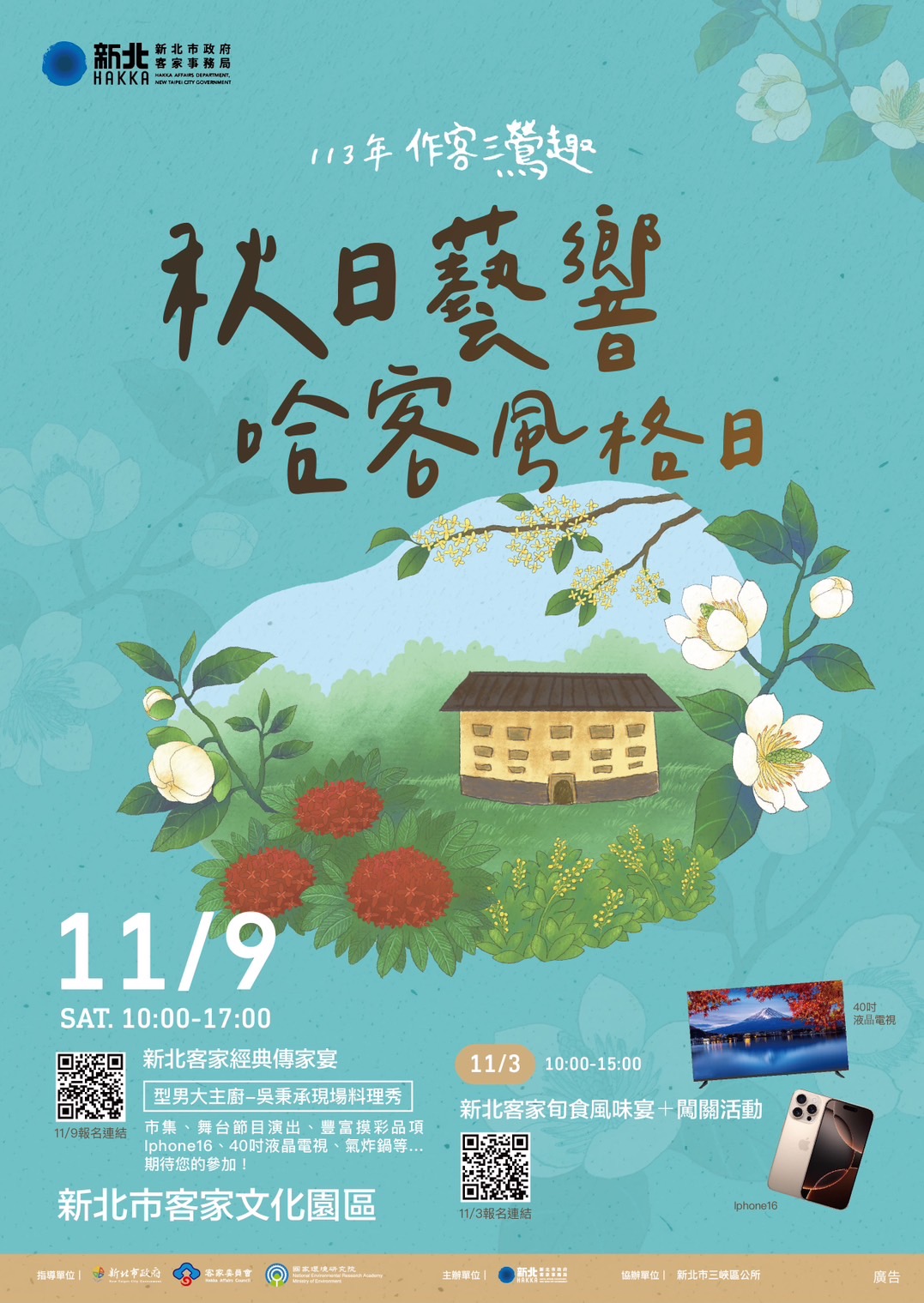 *與會【新北客家旬食風味宴+哈客體驗】還可獲得11月9日主活動摸彩券一張,有機會獲得iPhone 16、40寸液晶電視、氣炸鍋等多項大獎喔!