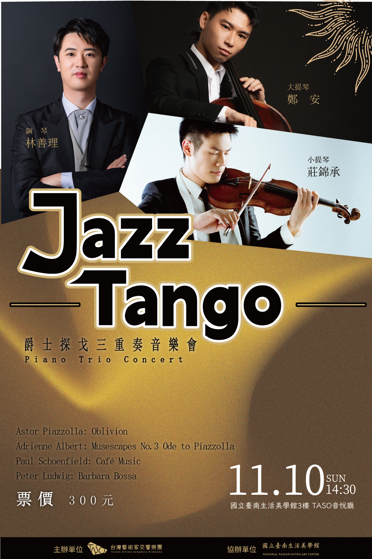 這場音樂會是以爵士與探戈風格為主軸。為大家帶來皮耶佐拉融合傳統古典樂與爵士樂風格的探戈名作《遺忘》;以及由艾德莉安・亞柏創作,向皮耶佐拉致敬的探戈風鋼琴三重奏。爵士的部分,將帶來保羅・荀菲爾德的代表作《咖啡音樂》。另外一首「新派爵士樂」則是富含巴薩諾瓦風格的樂曲《芭芭拉・巴薩》。