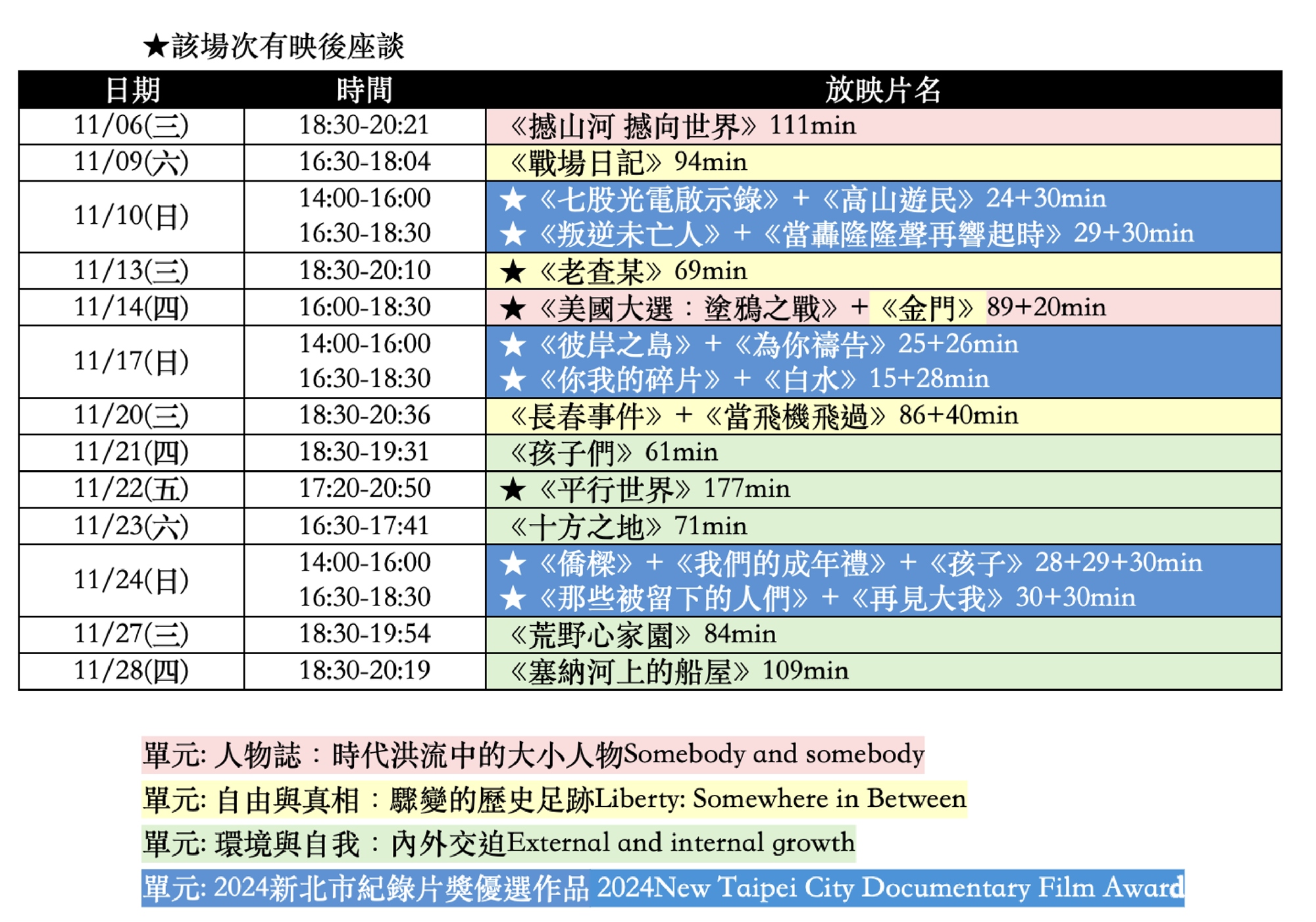 ✮ 更多放映場次及活動資訊,請鎖定感動無所不在,新北市紀錄片系列活動臉書粉絲專頁。