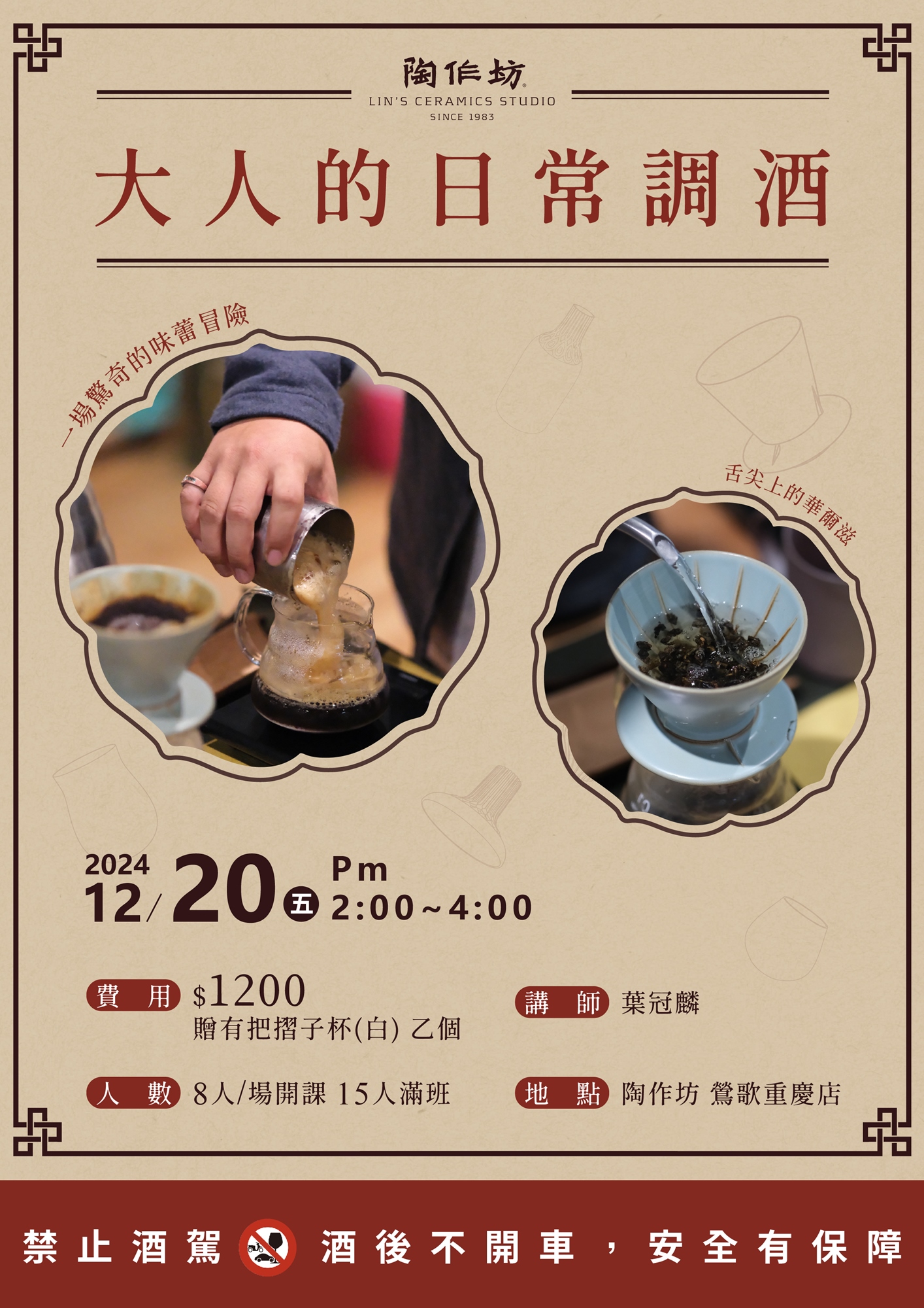 日常調酒,以陶作坊器具為主沖煮調製茶酒、咖啡調酒🥂