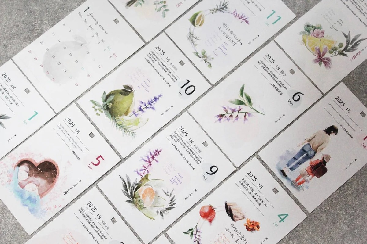 2025 我們將透過『調香日曆』走訪『人生旅程』,用繪畫、文學與香氛,紀錄人生旅途中的美麗風景,用香氛把生活過成詩。讓365的每一天,充滿大地花草香氛能量!