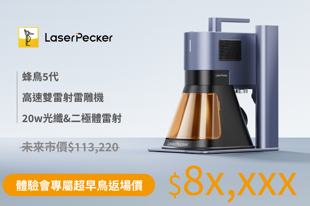 蜂鳥 5 代 高速雙光源雷雕機 產品體驗會|名額有限先搶,先贏!