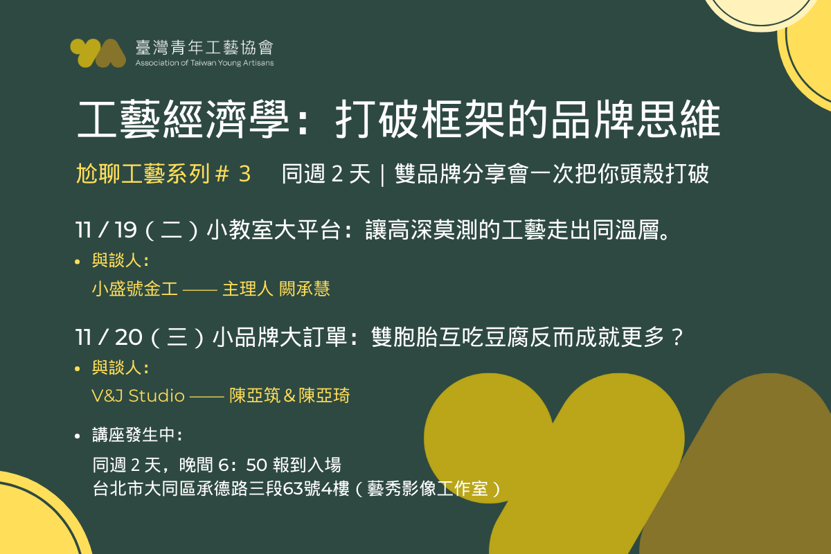 臺灣青年工藝協會【 尬聊工藝系列 】專題講座第3檔!