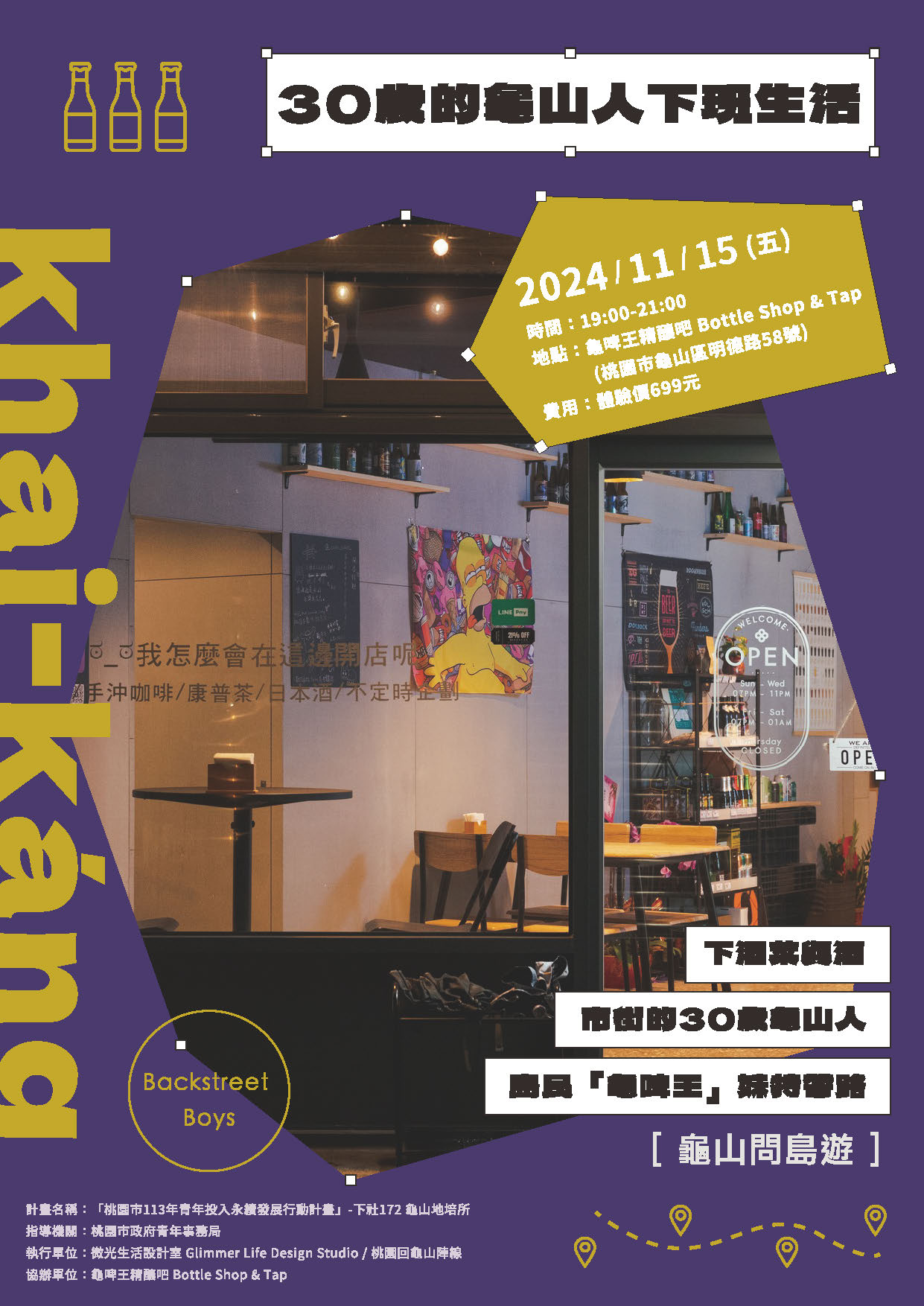 本場將帶大家體驗30歲世代的龜山人下班的生活場景,同時也來認識這位島民的生活以及他的龜山精釀啤酒吧宇宙!