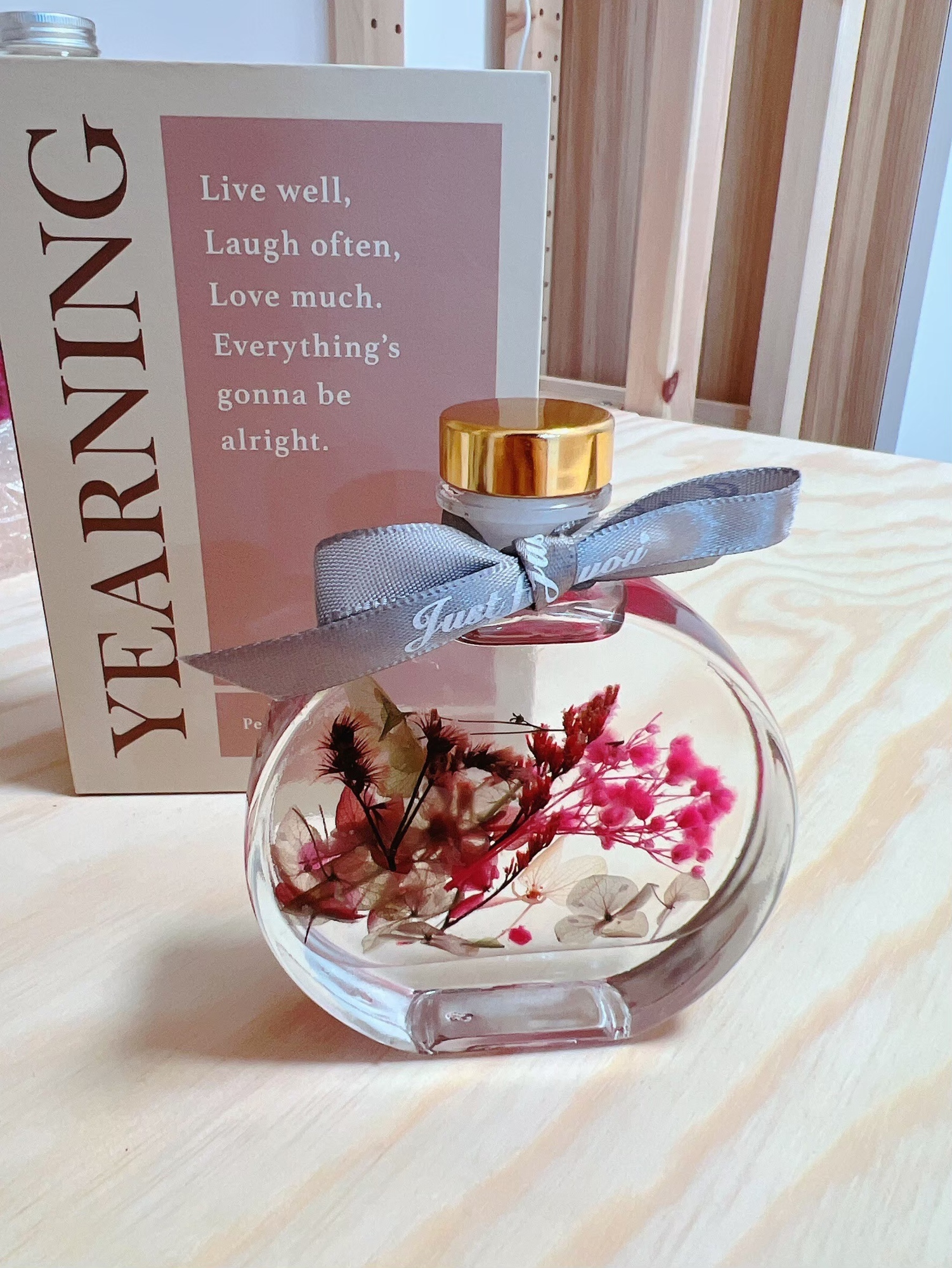 - 花材及其他內容物擺放瓶中灌注專用油