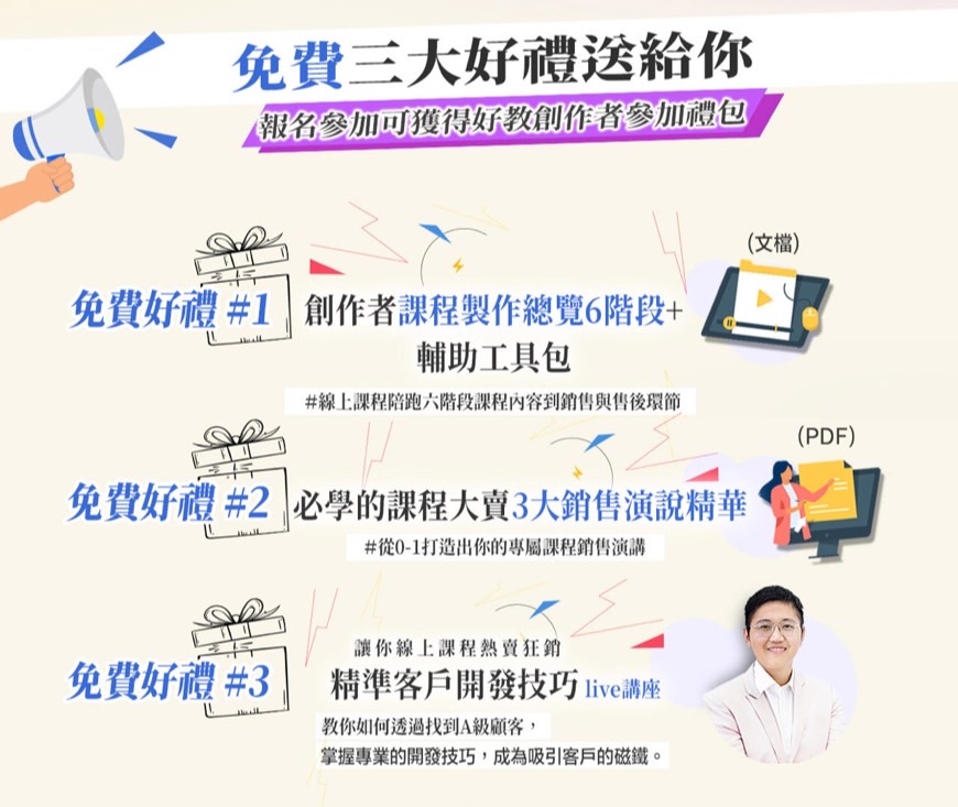 參加10/27(日)研討會的你,將免費獲得我們3大好禮!