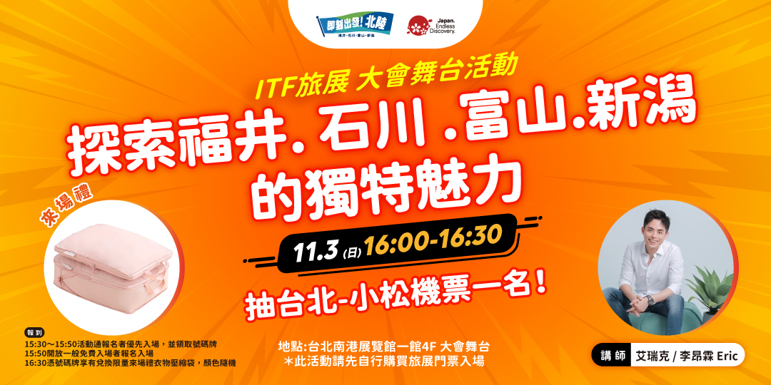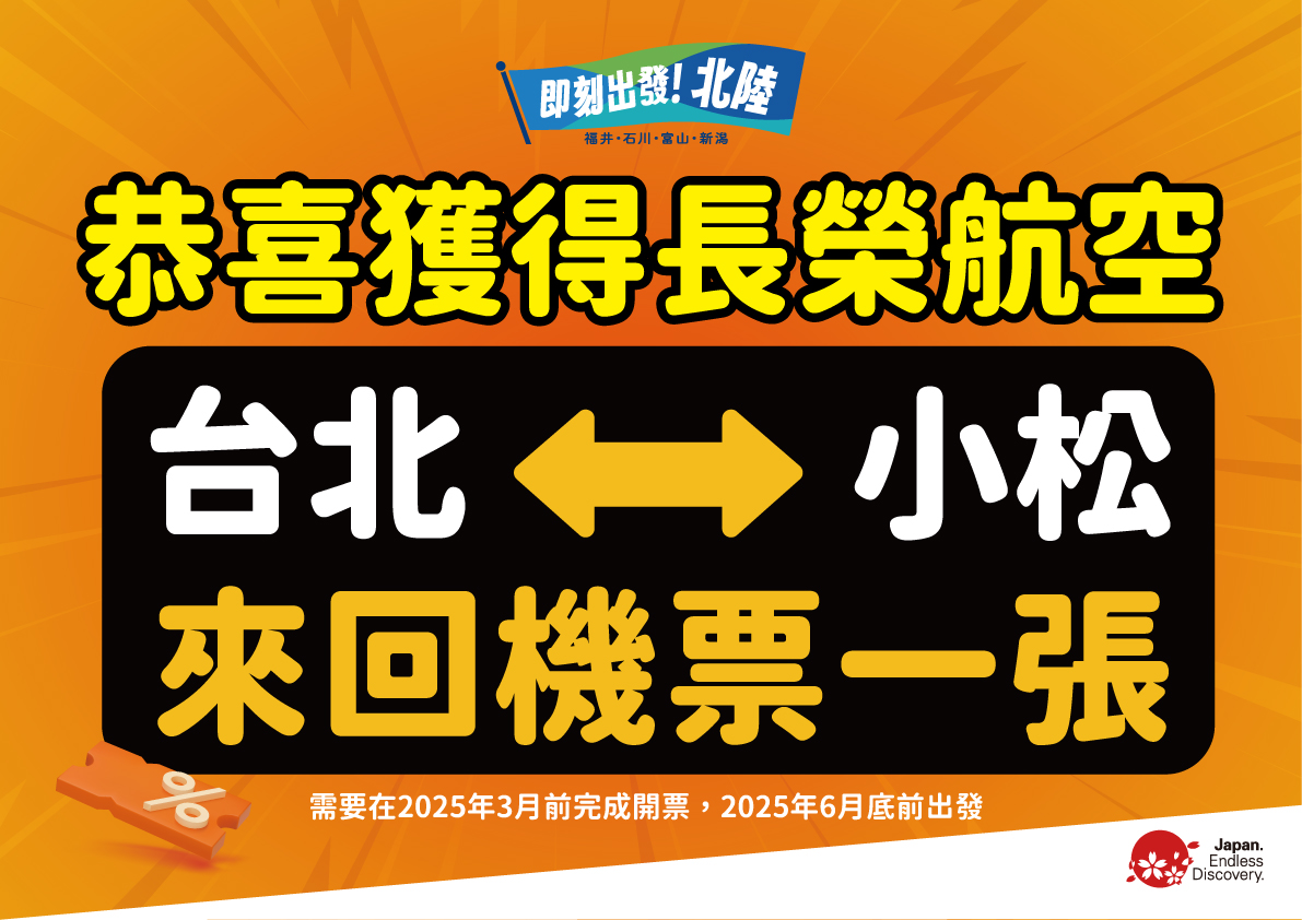 抽北陸好禮,最大獎:台北-小松機票一名!