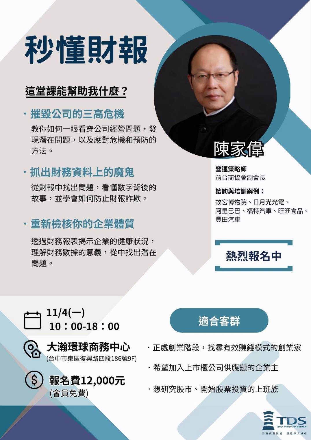 ●授課講師:世界500強企業營運策略師 陳家偉老師
