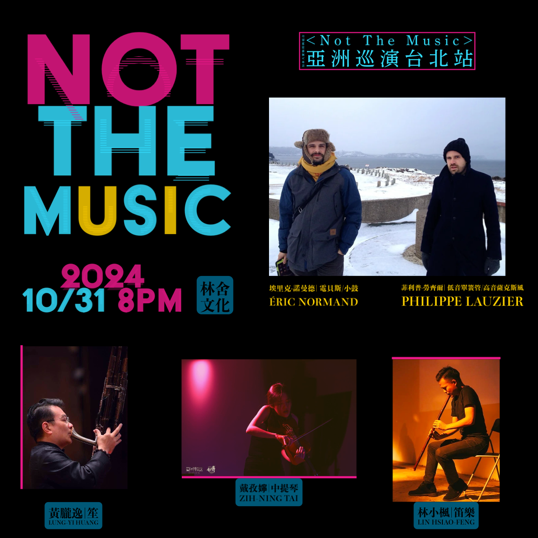 此場演出也是「Not The Music」亞洲巡演的台北站,活動另邀請笙演奏家、台北和樂集團長黃朧逸,青年中提琴演奏家戴孜嬣、林舍文化笛樂家林小楓共同參與演出,歡迎蒞臨觀賞!