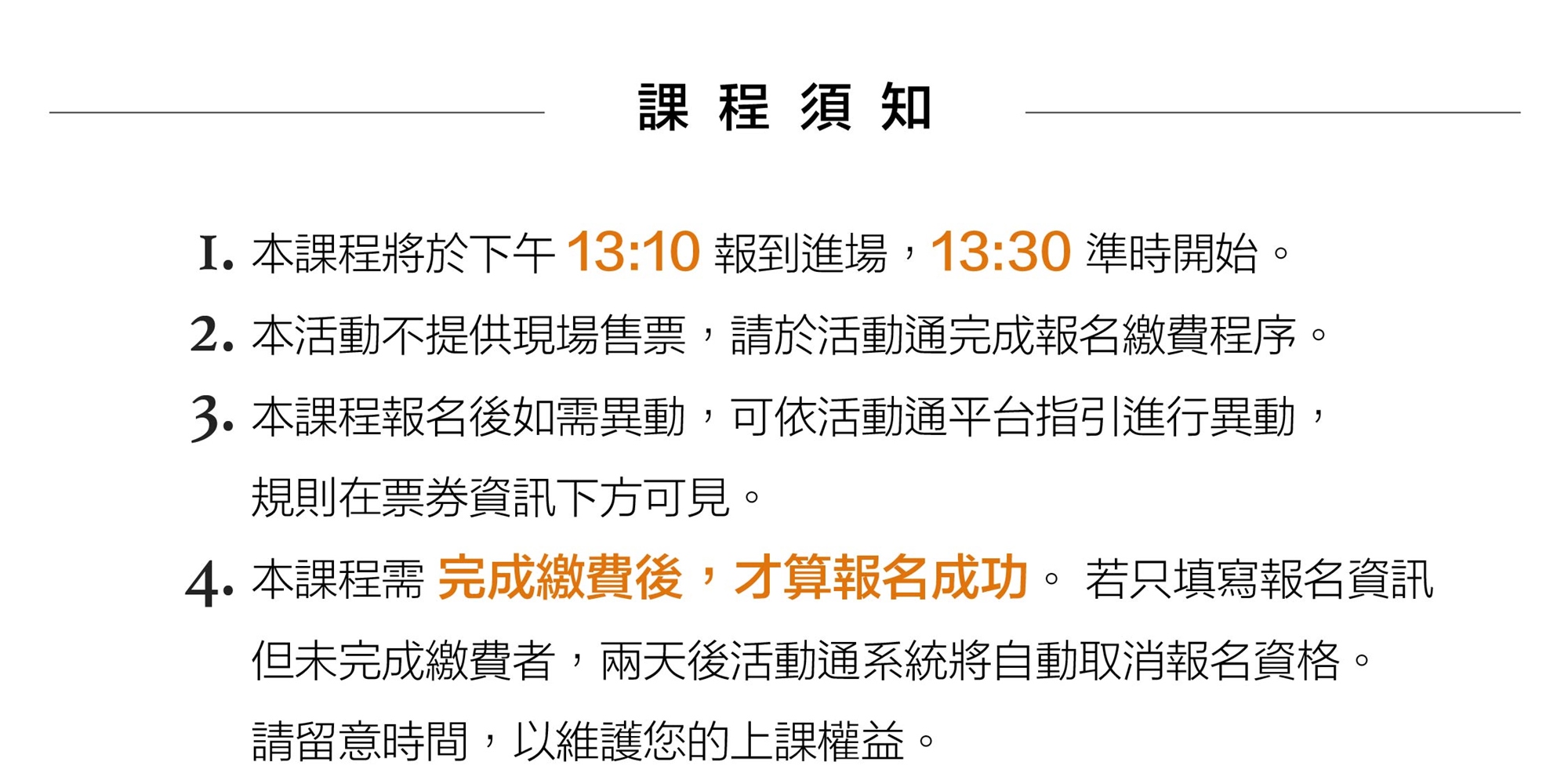 Q:如果報名之後,需要調整上課的場次,或是取消課程,是可以的嗎?