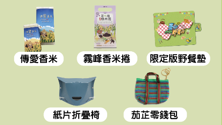 ✩ 活動當天至「服務台」捐贈3張「雲端發票」獲得闖關卡,完成園區三處闖關關卡,即可至服務台兌換限量好禮(限定版野餐墊、傳愛香米、霧峰香米捲、紙片折疊椅、茄芷零錢包等多種選擇,每人1份,數量有限,兌完為止)
