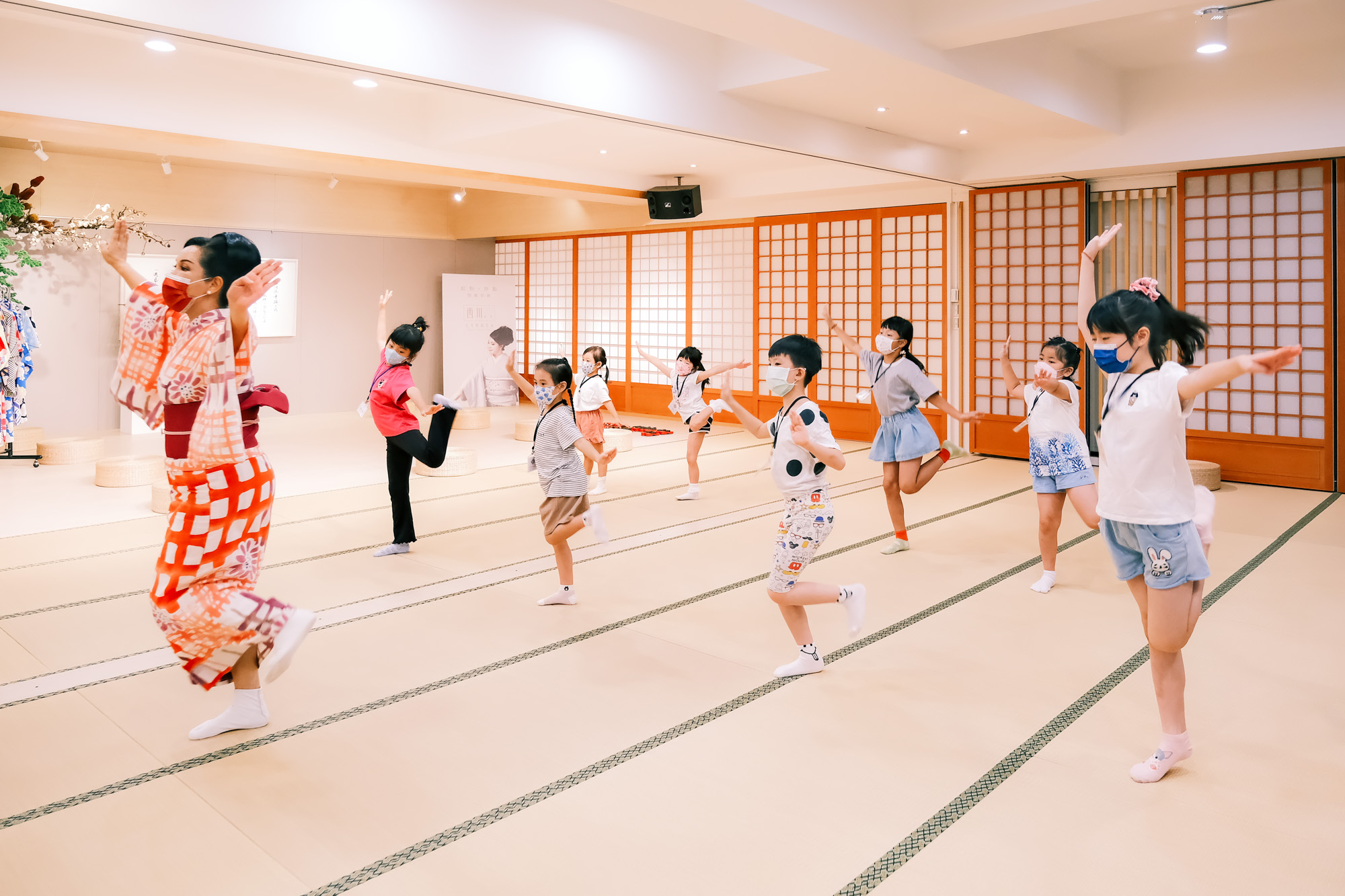 全台首創200坪日本舞踊美學教室,優美典雅的時光長廊、樸實清香的榻榻米、古色古香的江戶和室、精緻華美的賞花幕和服展......讓孩子們打開感官自在探索,沉浸學習彷彿一秒穿越到日本!