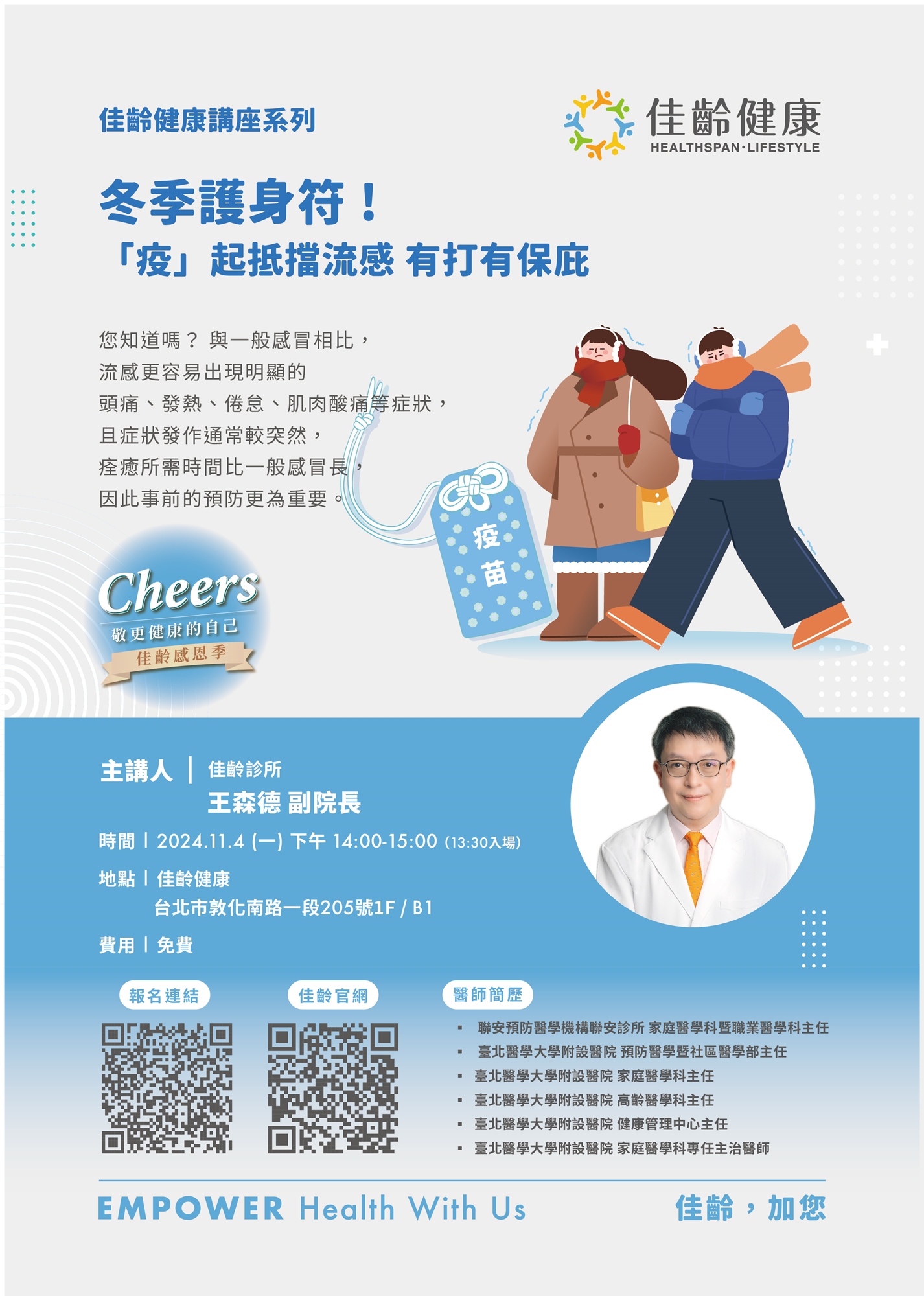 【冬季護身符 !「疫」起抵擋流感,有打有保庇】講座熱烈報名中🔥