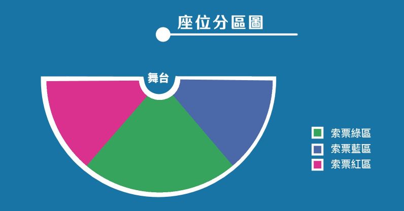 ℹ️演出前30分鐘起開放報到及入場,憑票可於報到處兌換紀念手環,依手環顏色分區自由入座。