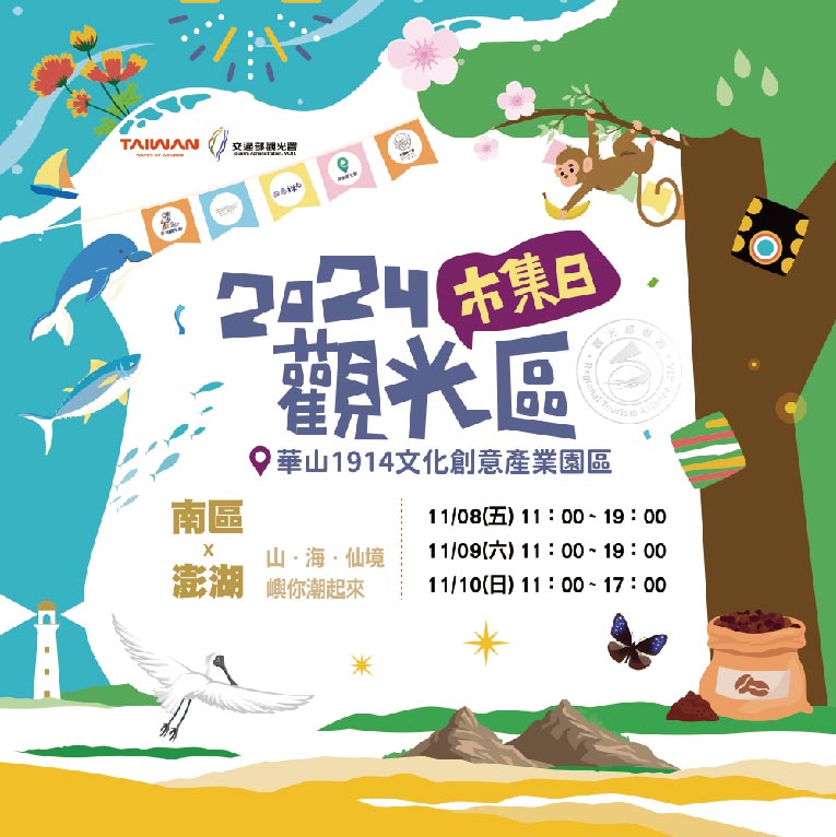 我們將於11/8-11/10,在台北華山1914文化創意園區舉辦【2024觀光區市集日(南區X澎湖)】集結屏東、高雄、臺南、嘉義、雲林、澎湖的山.海.仙境業者!!!!超強陣容等你來!