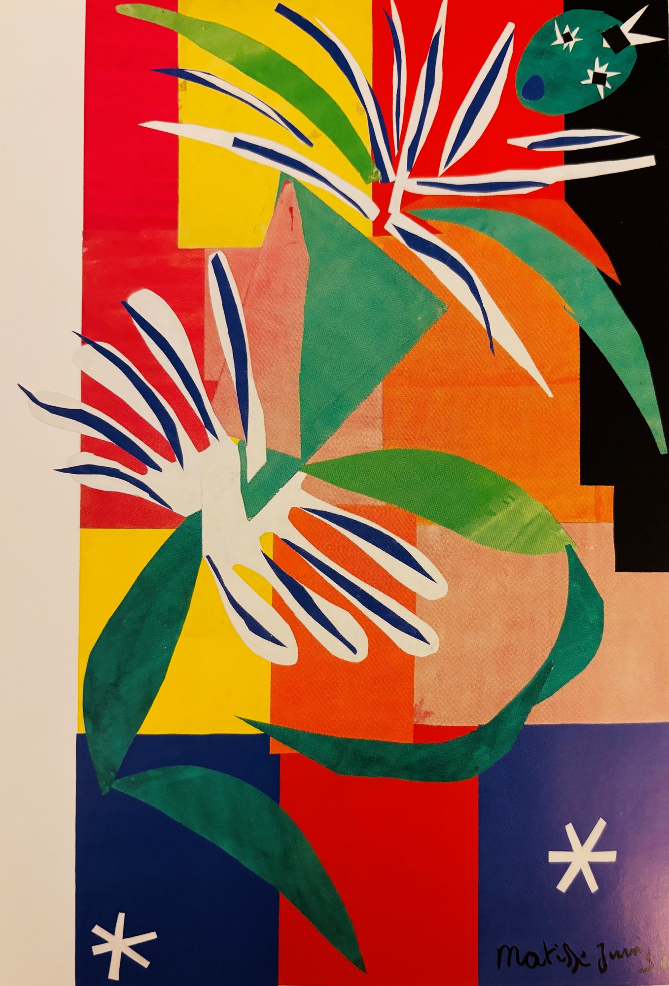 根據書籍文獻記載,亨利.馬蒂斯手術後的彩紙拼貼作品,是他人生最重要的時刻,創作的由來是來自於他過往的記憶,經過內心反覆的思考,完成簡單化的彩紙拼貼鉅作。
