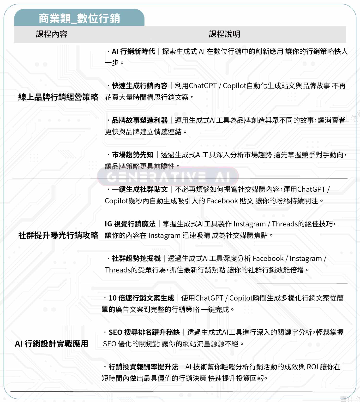 1. 本課程學員需自備電腦上課,[ 建議規格:64位元電腦(Windows、Mac皆可) 、記憶體 8G 以上、需具備 Chrome 或 Edge 瀏覽器。]