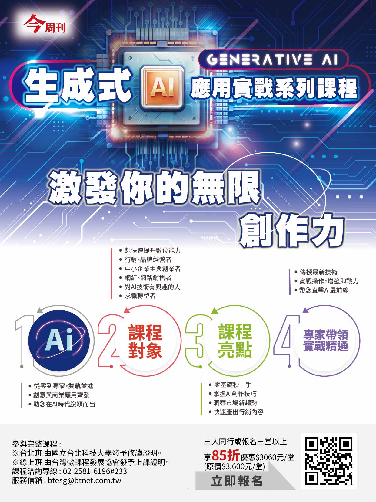 2. 今周刊ESG學院舊生不限時間,皆享9折優惠$3,240元/堂。(11/8起舊生報名請來電詢問折扣碼)