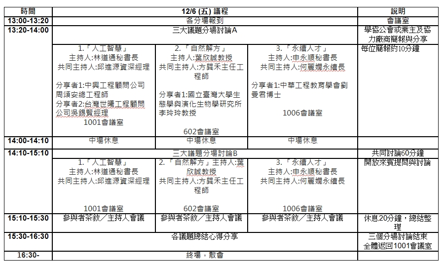12/6(五) 整體議程: